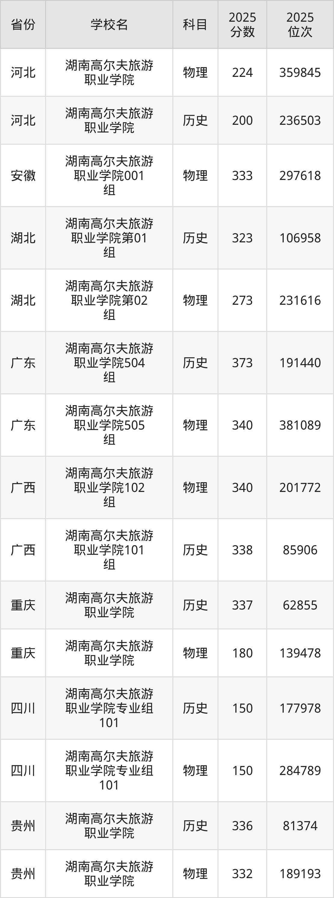 二、湖南高尔夫旅游职业学院近两年录取分数线