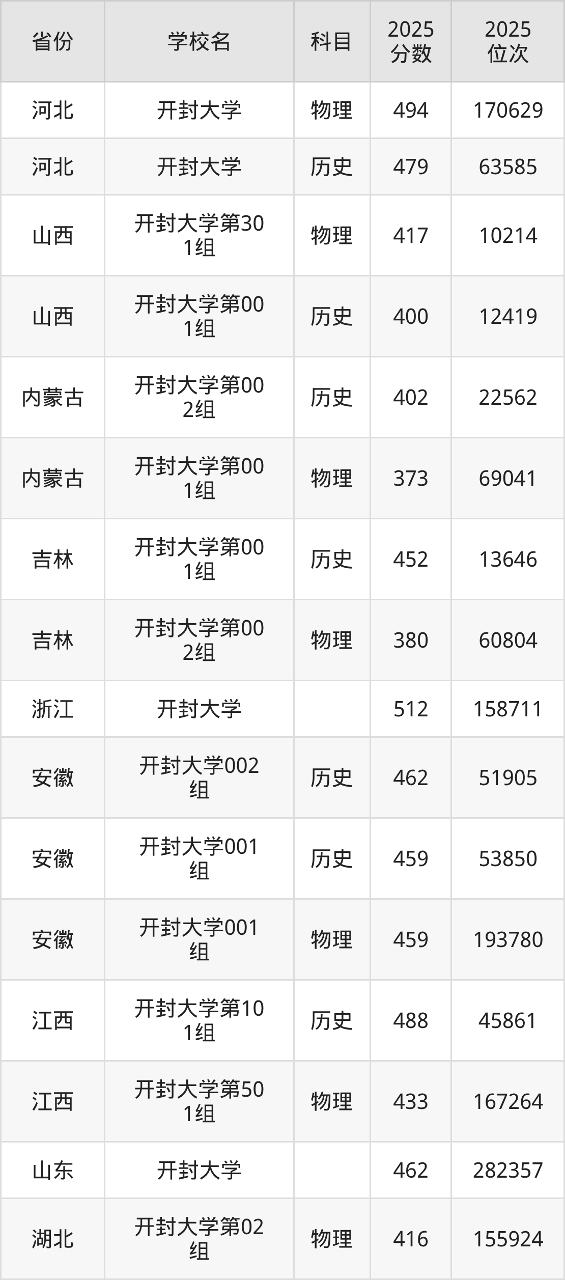 2025年开封大学历史类最低分459分(53850名)、物理类最低分459分(193780名)。