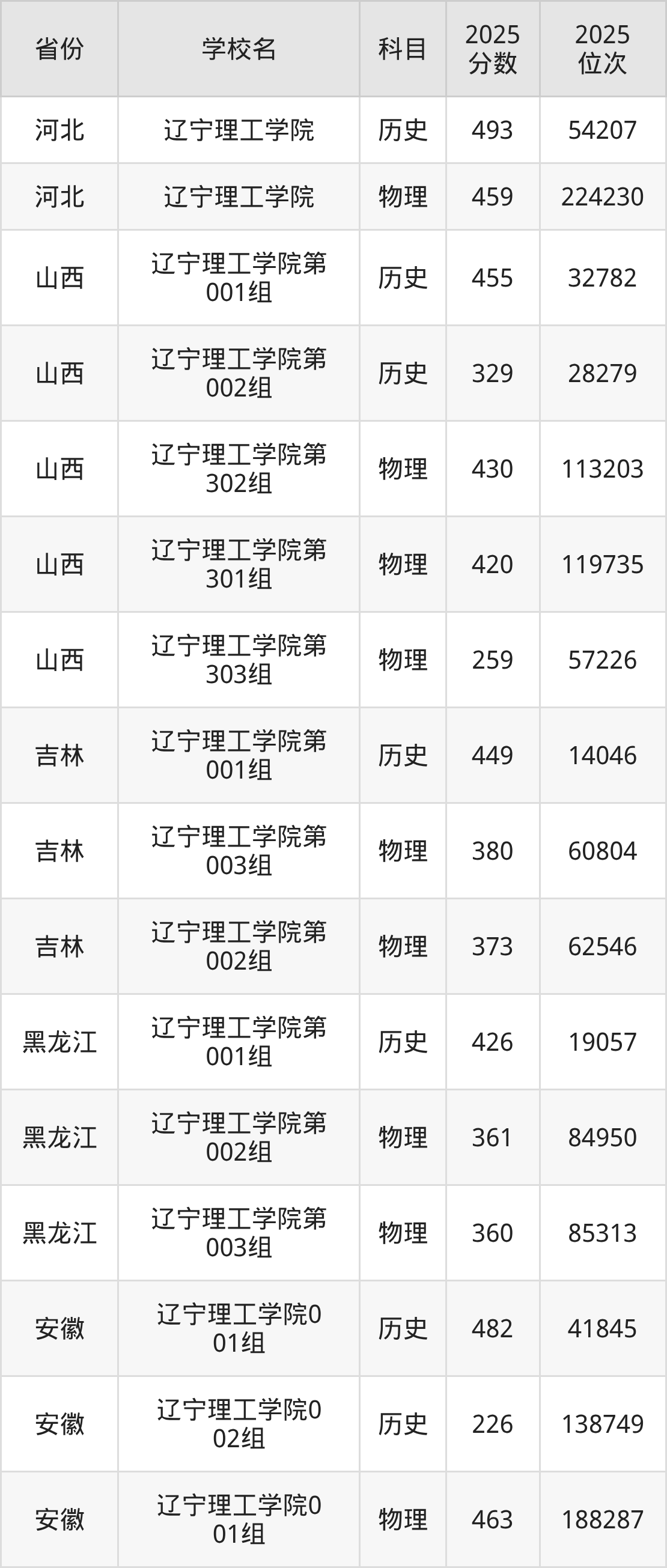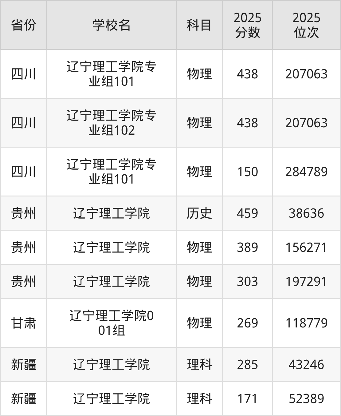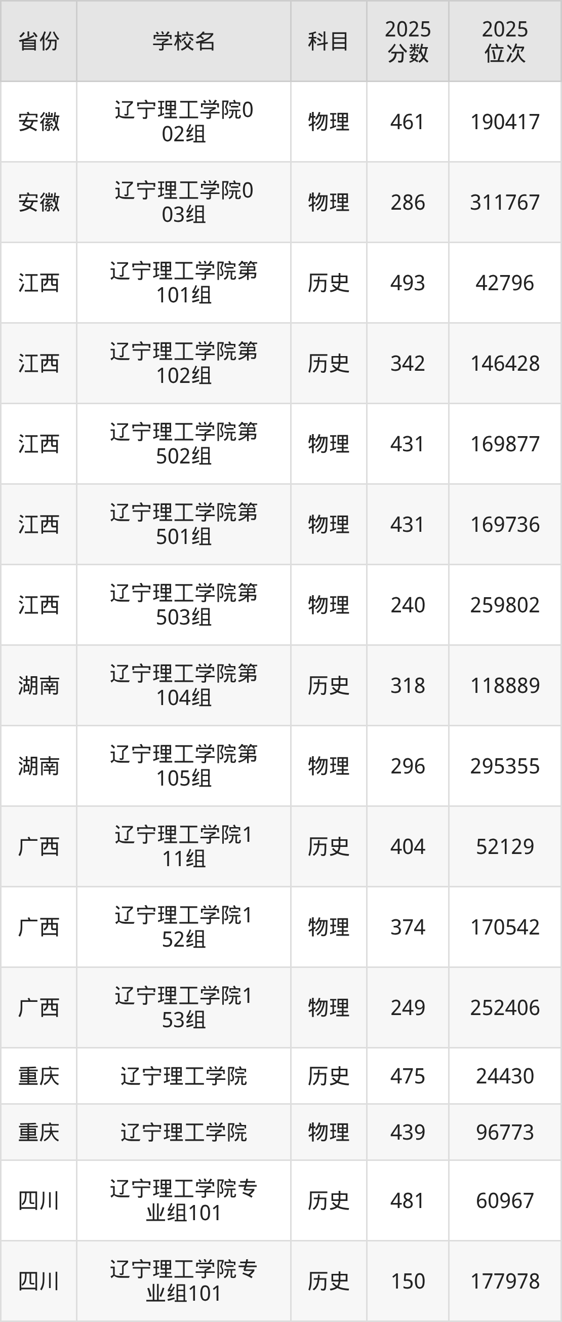 2026年辽宁理工学院录取分数线预计在360分及以上,在各省录取最低分存在一定差异,如:2025年辽宁理工学院在四川录取最低历史类150分、物理类150分,在贵州录取最低历史类459分、物理类303分,在新疆录取最低理科171分。