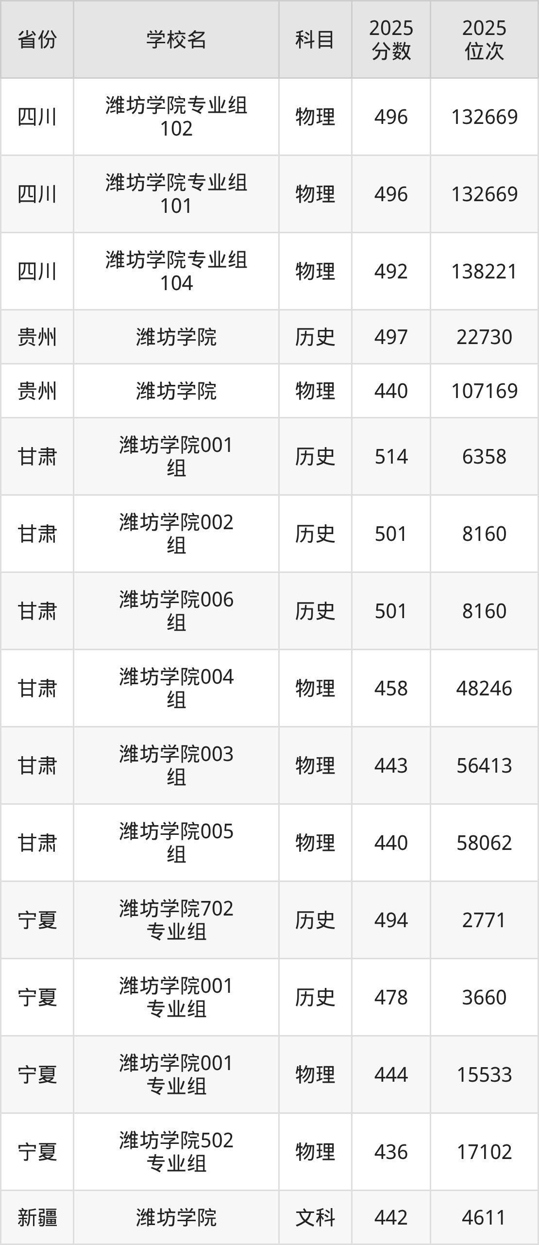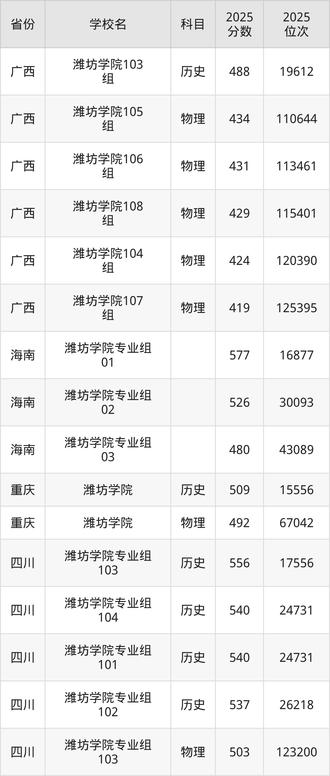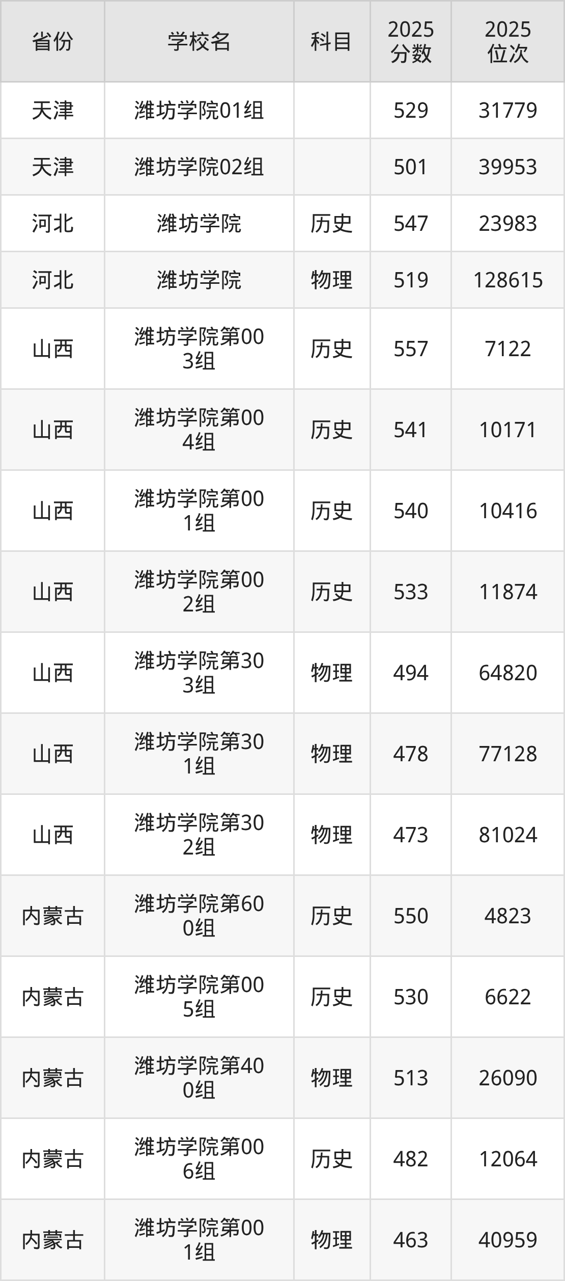 下面是潍坊学院2025年录取分数线各省汇总,一起来了解下吧。