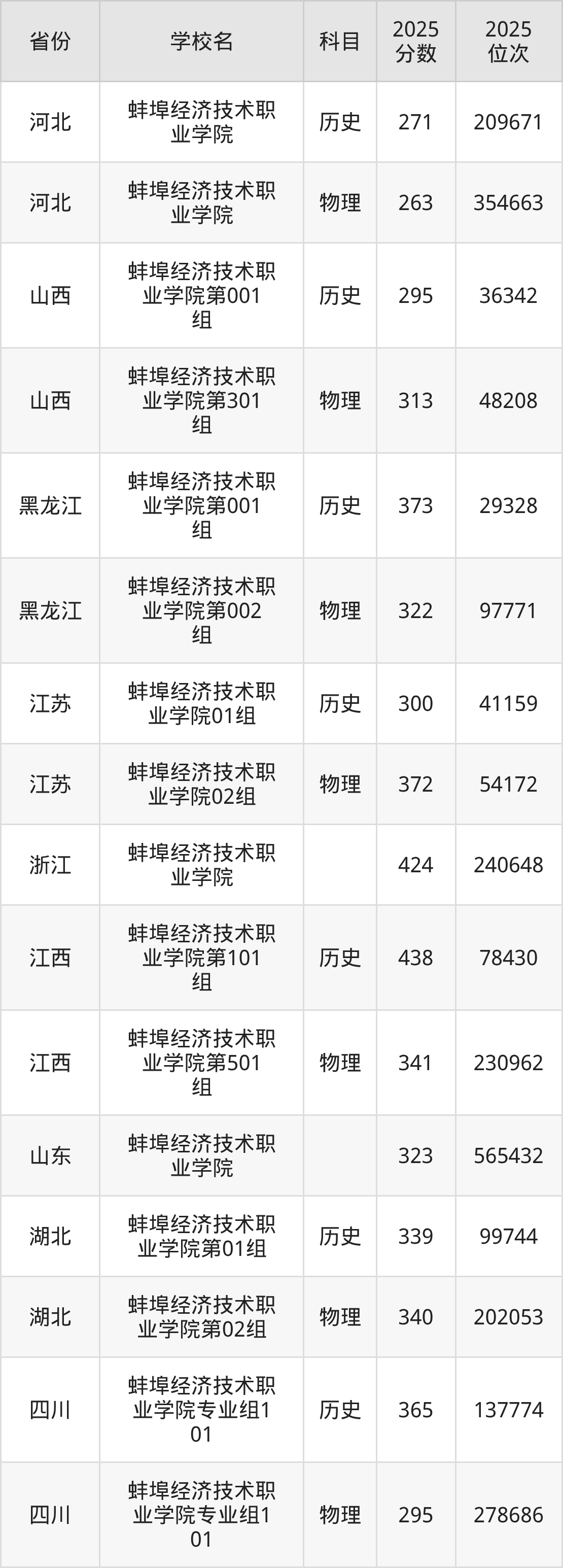 下面是蚌埠经济技术职业学院2025年录取分数线各省汇总,一起来了解下吧。
