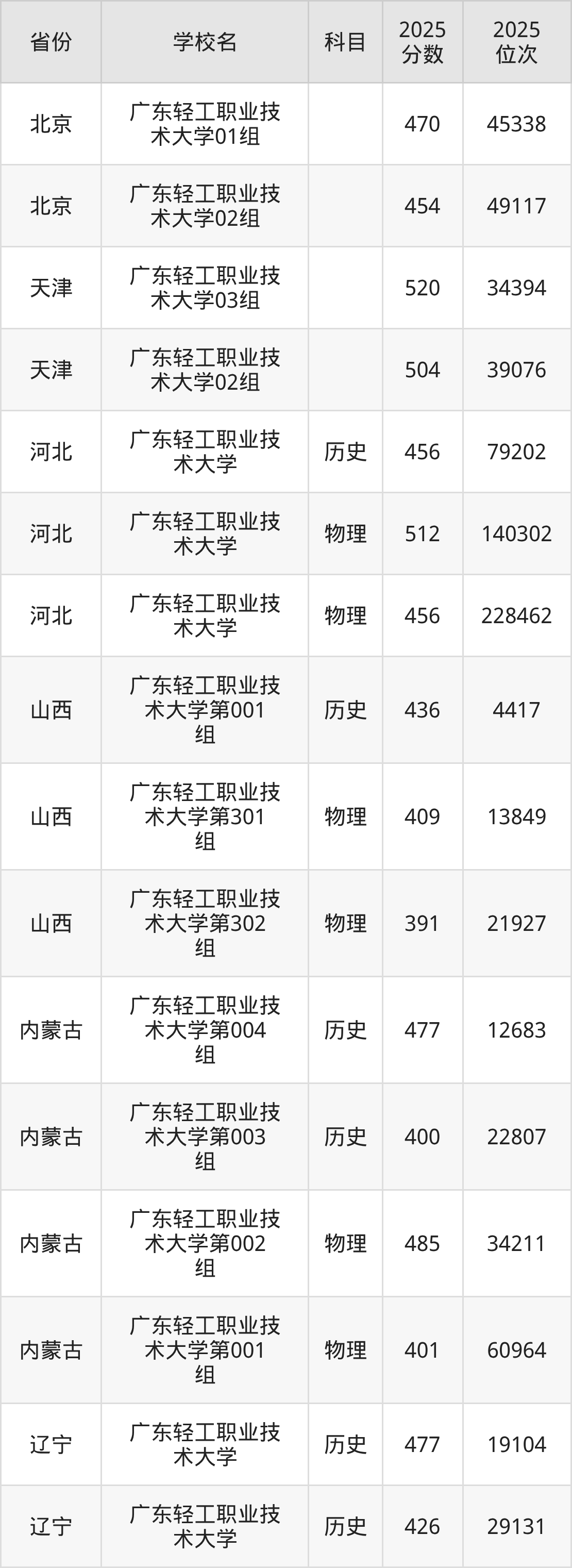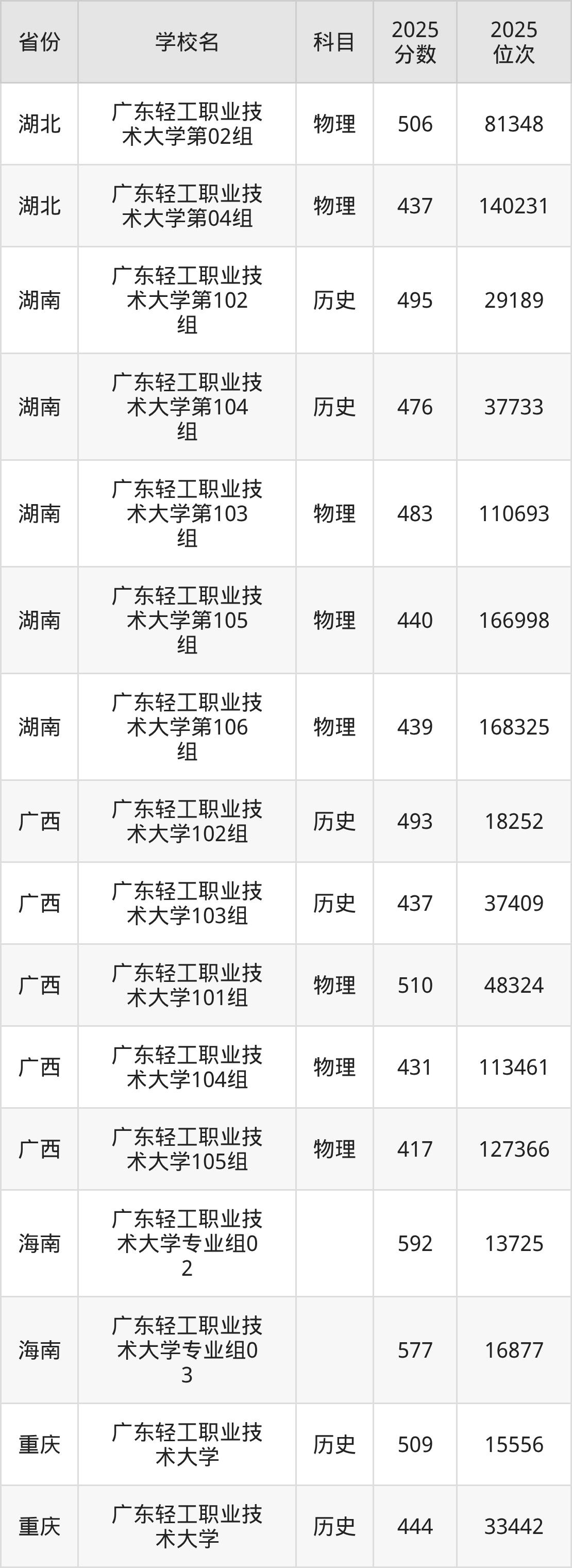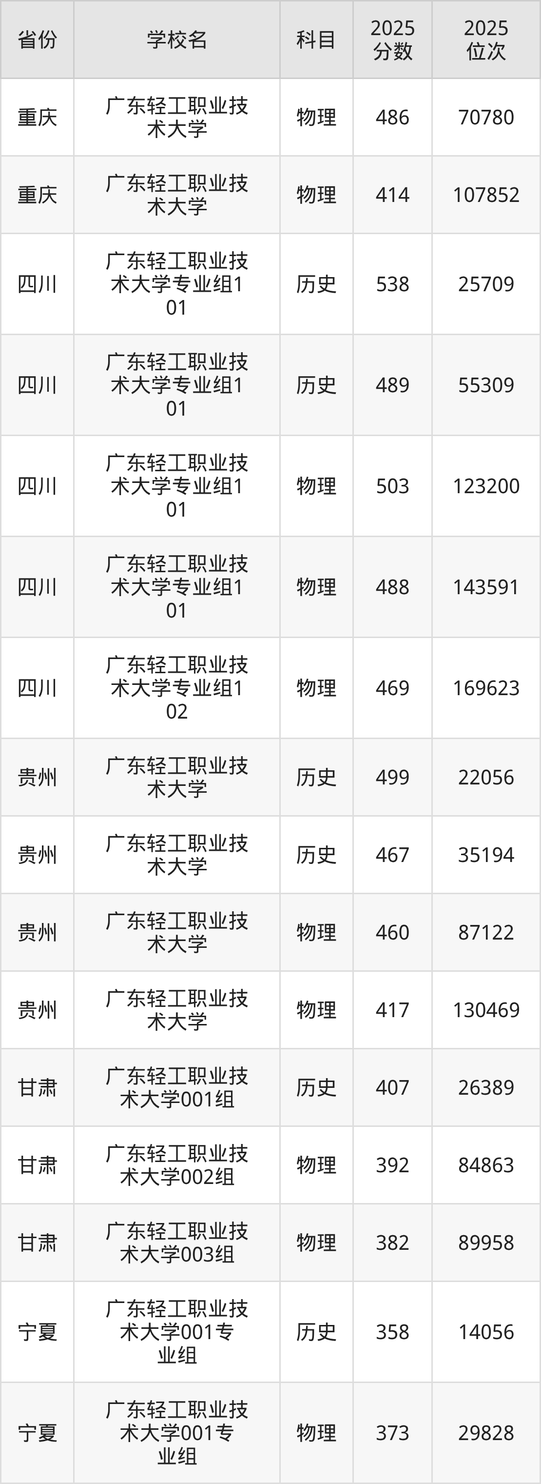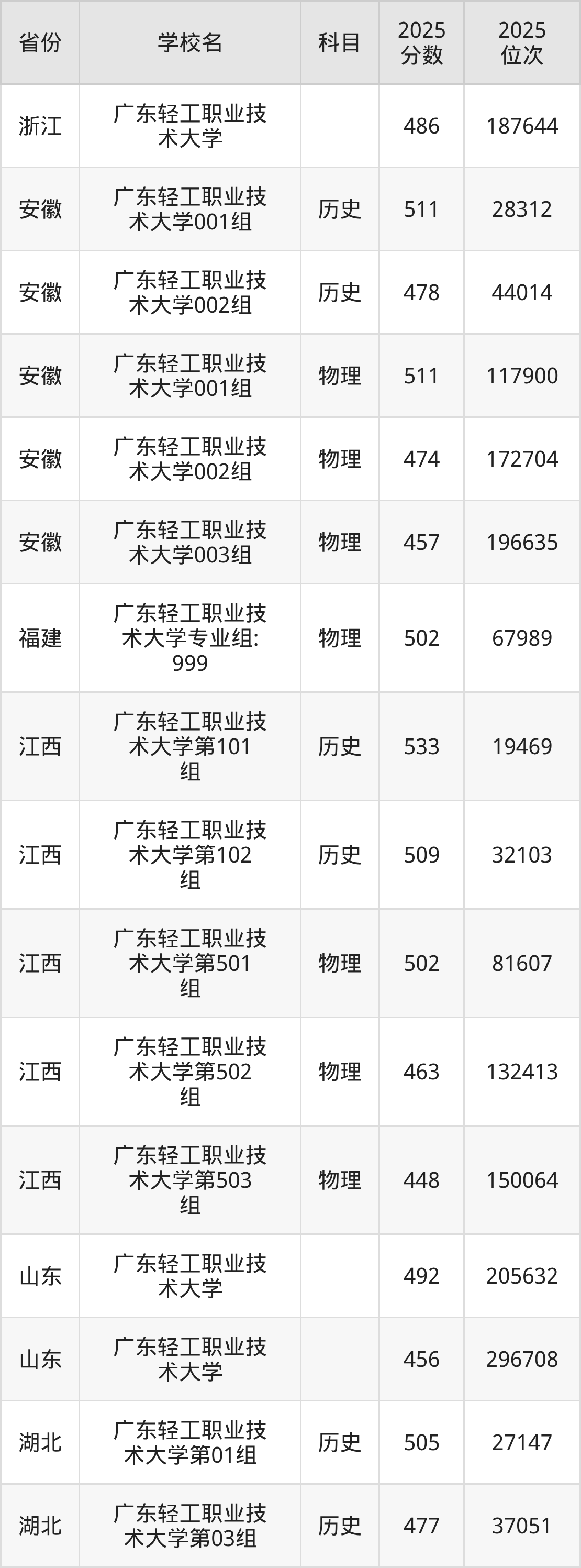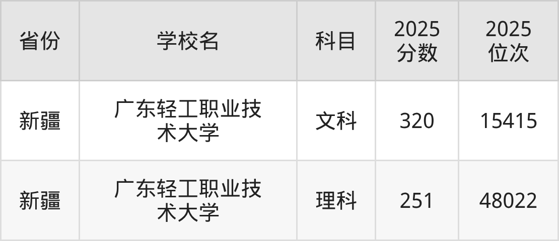 下面是广东轻工职业技术大学2025年录取分数线各省汇总,一起来了解下吧。