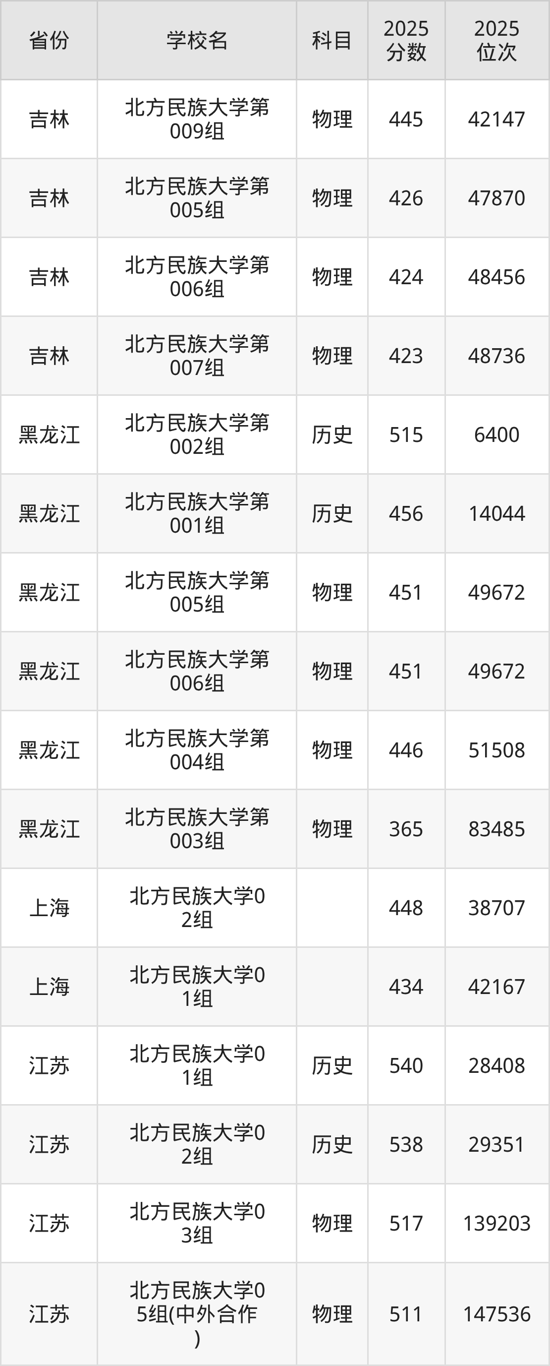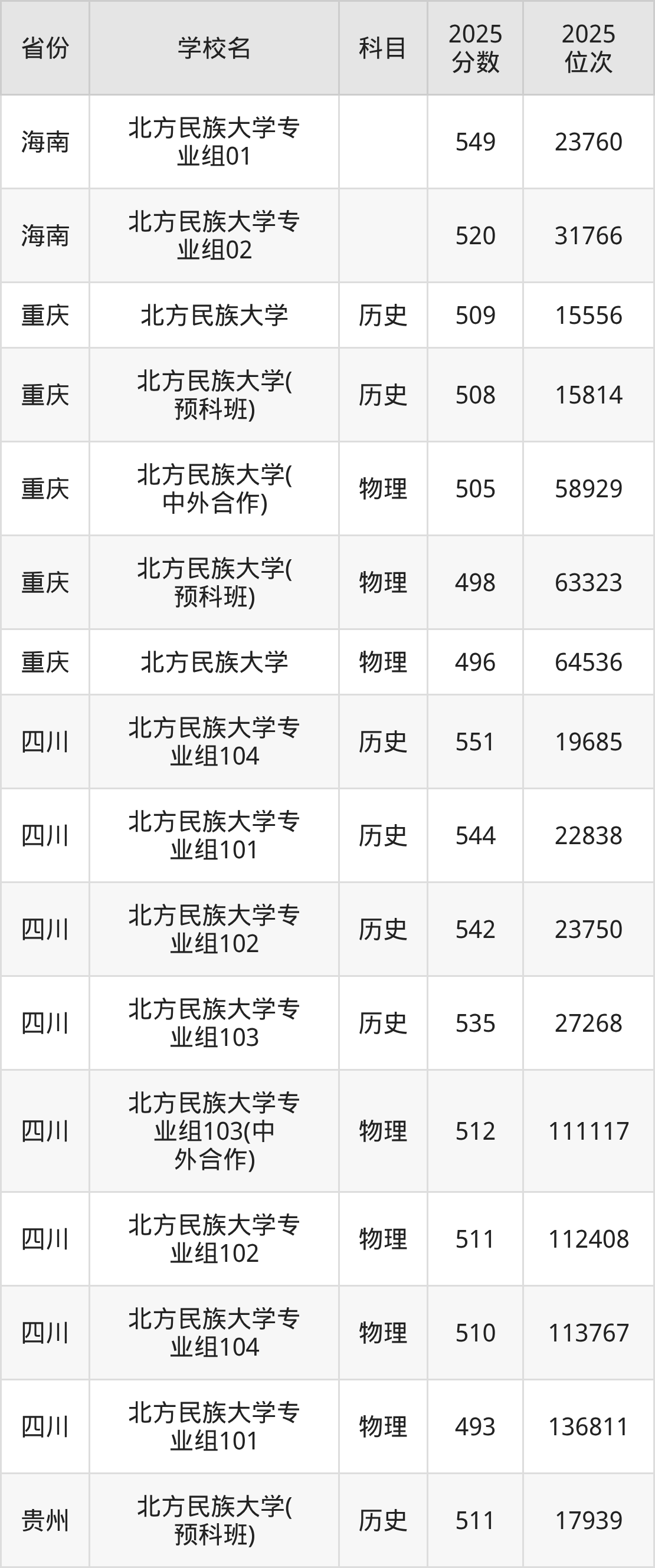 下面是北方民族大学2025年录取分数线各省汇总,一起来了解下吧。