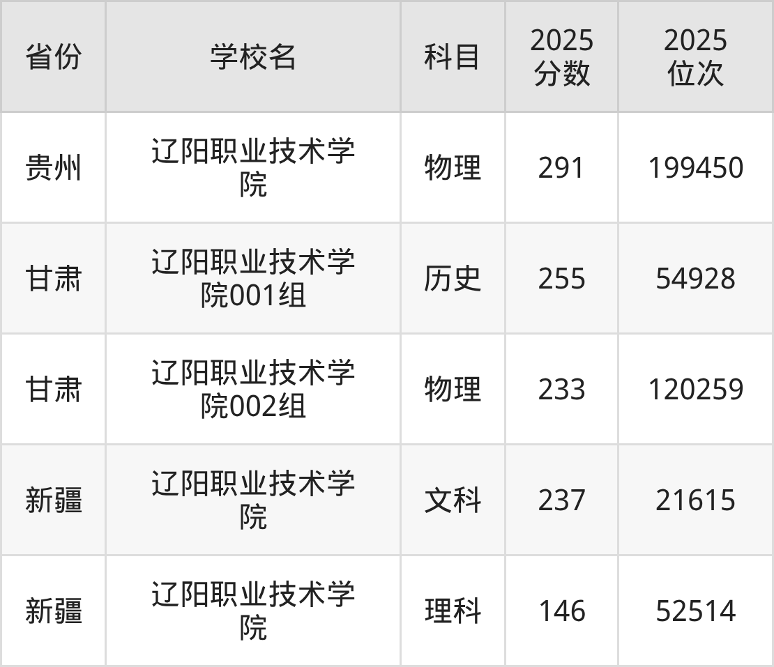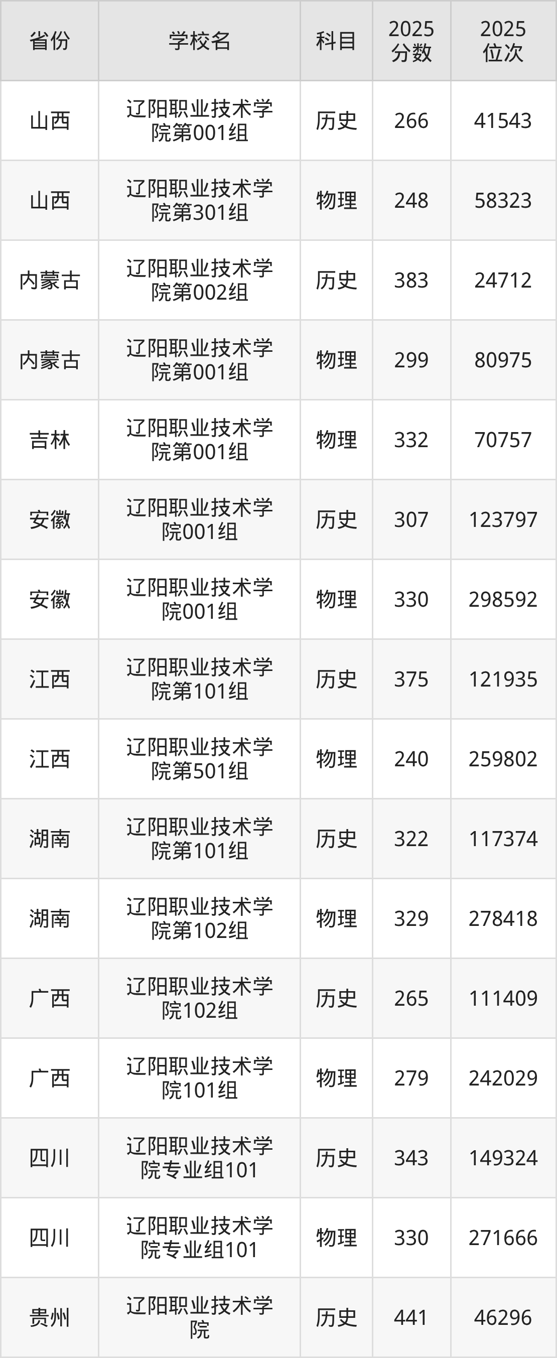 下面是辽阳职业技术学院2025年录取分数线各省汇总,一起来了解下吧。