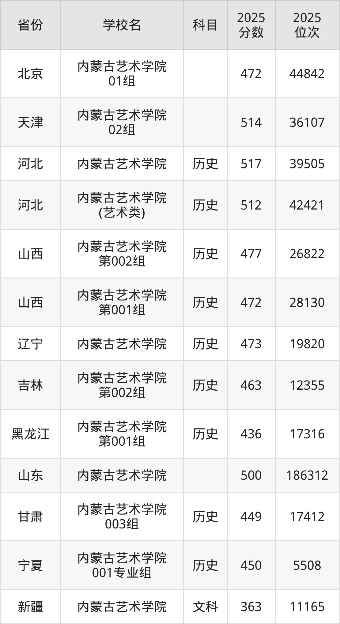下面是内蒙古艺术学院2025年录取分数线各省汇总,一起来了解下吧。