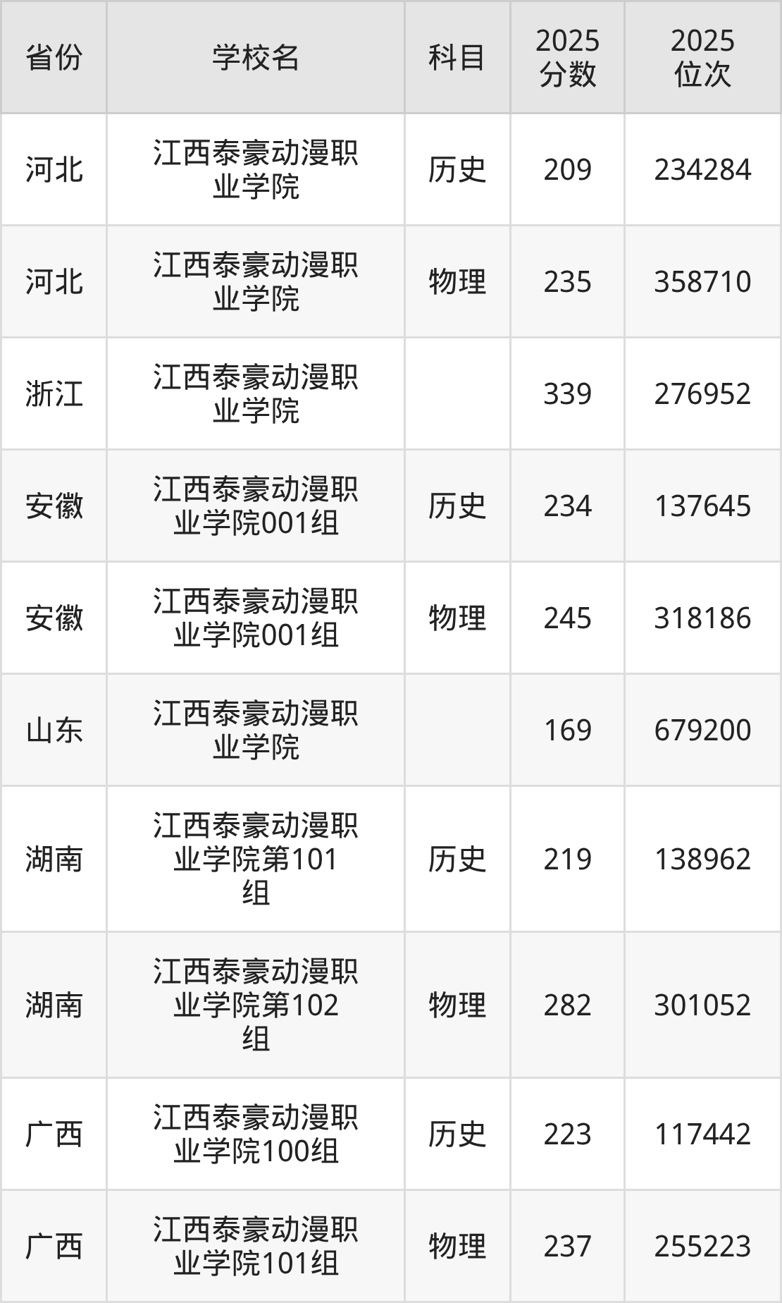 下面是江西泰豪动漫职业学院2025年录取分数线各省汇总,一起来了解下吧。