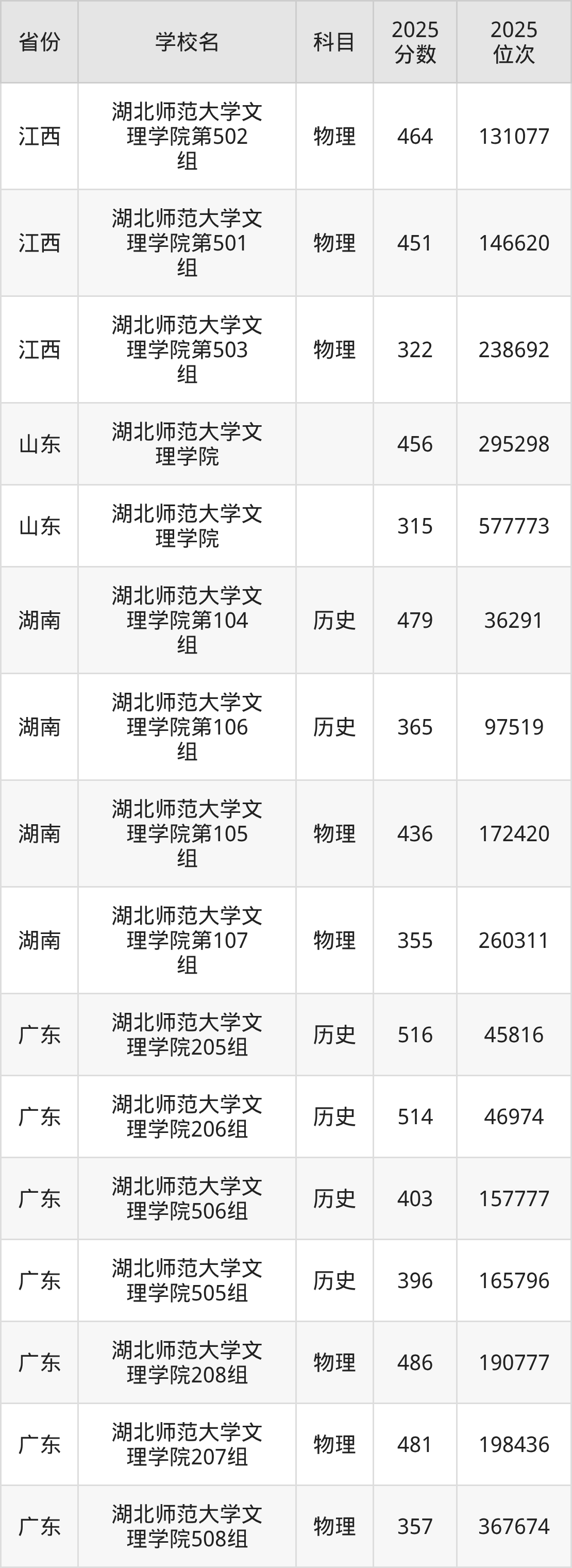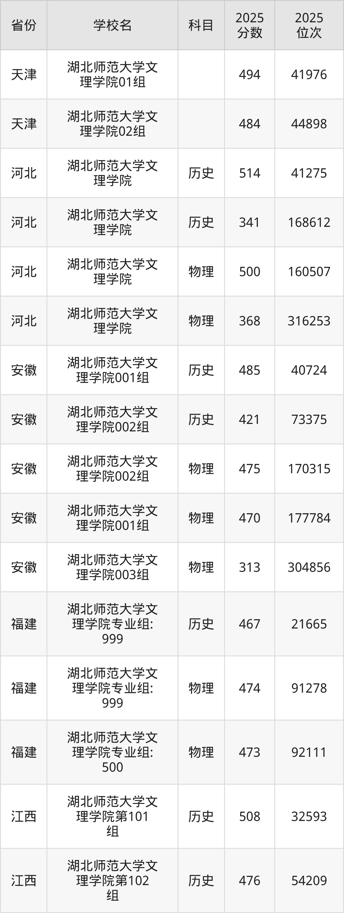 下面是湖北师范大学文理学院2025年录取分数线各省汇总,一起来了解下吧。