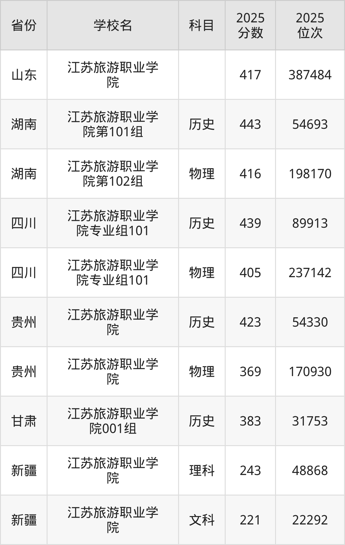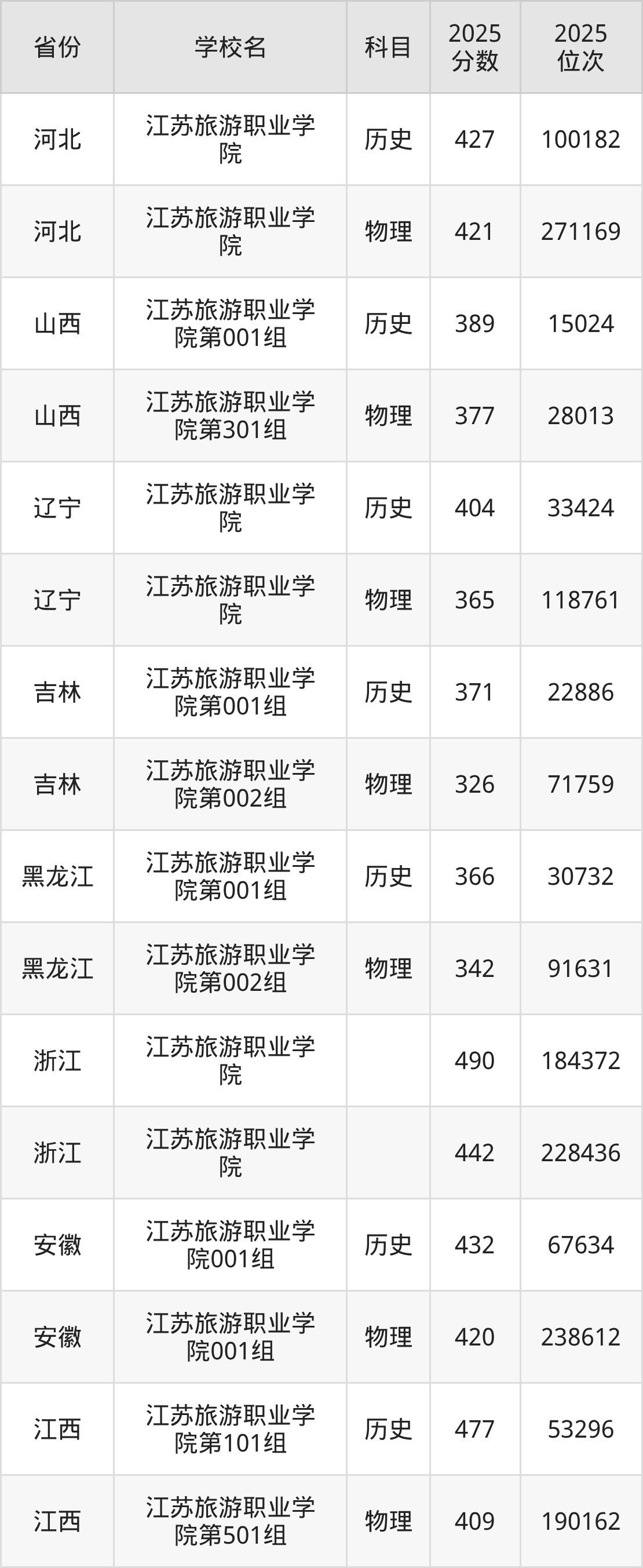 下面是江苏旅游职业学院2025年录取分数线各省汇总,一起来了解下吧。