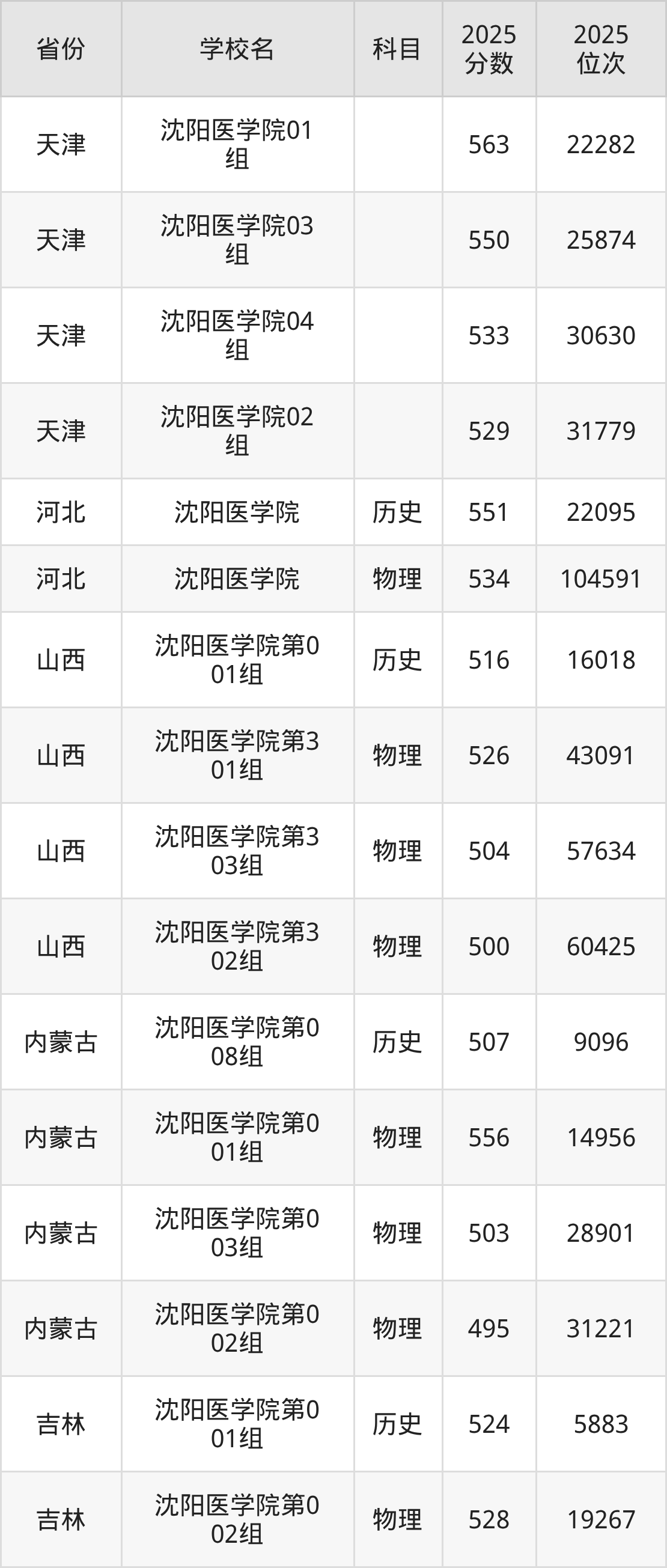 下面是沈阳医学院2025年录取分数线各省汇总,一起来了解下吧。