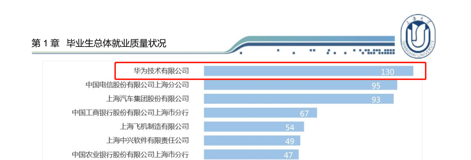 5、上海大学:2019年,华为共计在该校招收130名毕业生。
