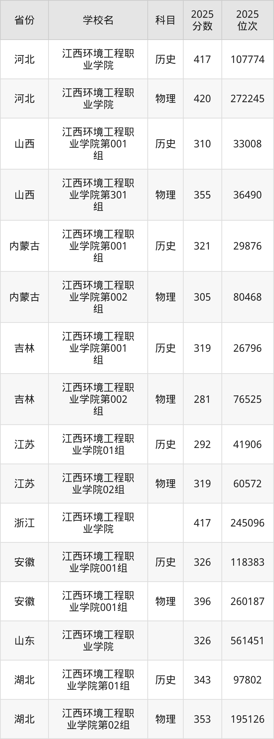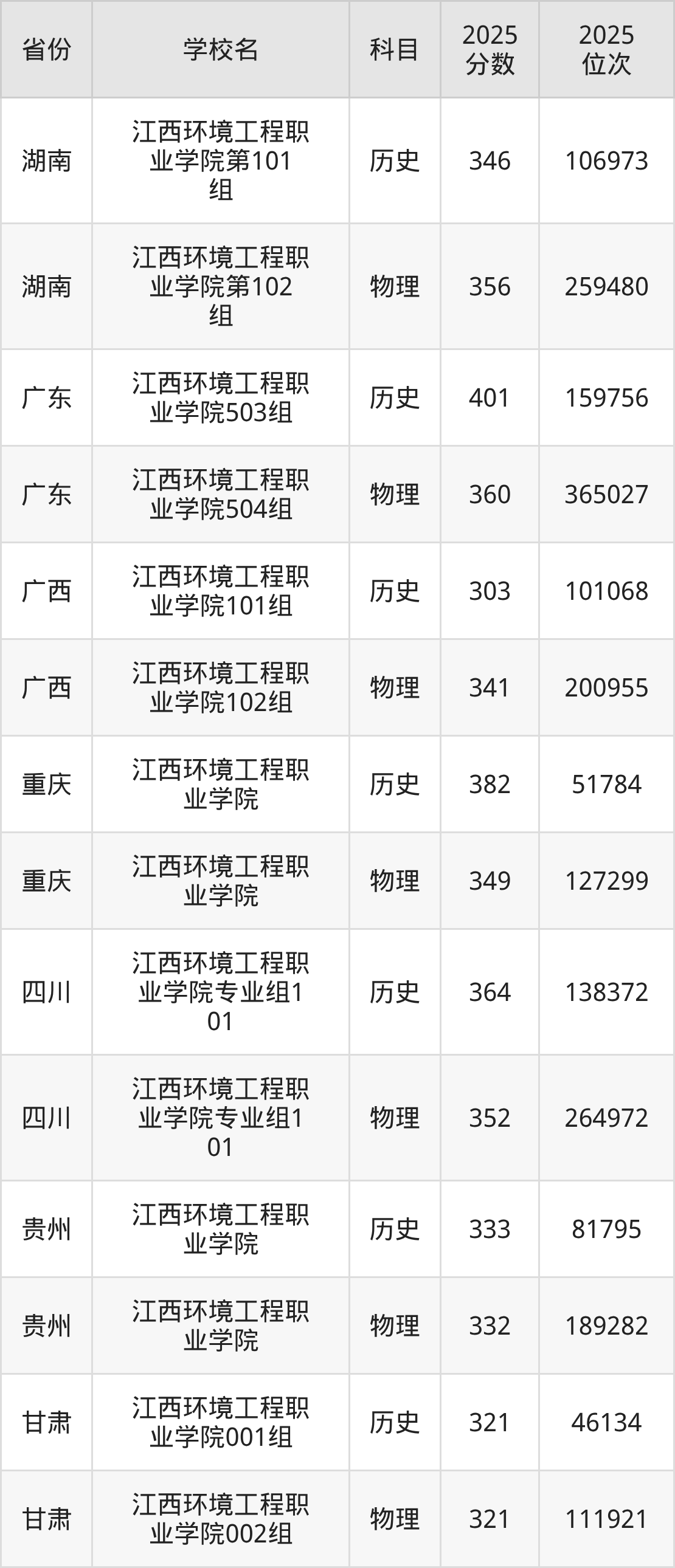 下面是江西环境工程职业学院2025年录取分数线各省汇总,一起来了解下吧。