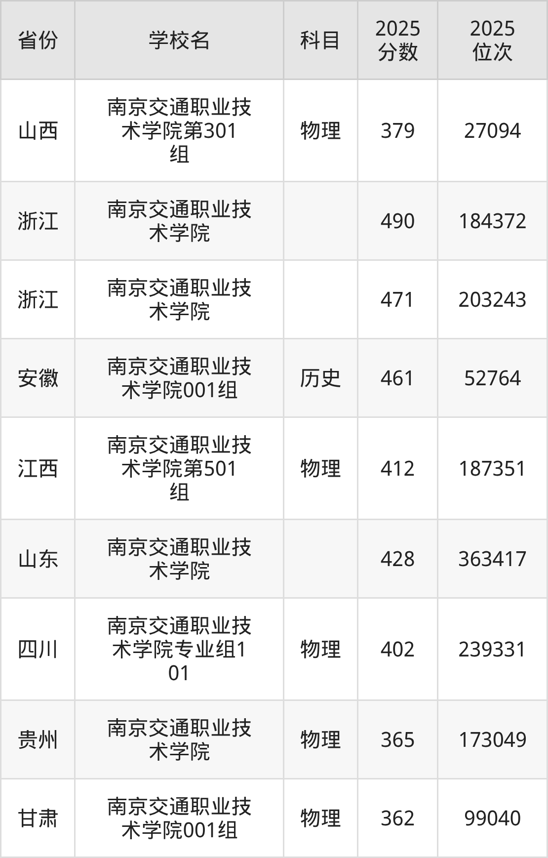 下面是南京交通职业技术学院2025年录取分数线各省汇总,一起来了解下吧。
