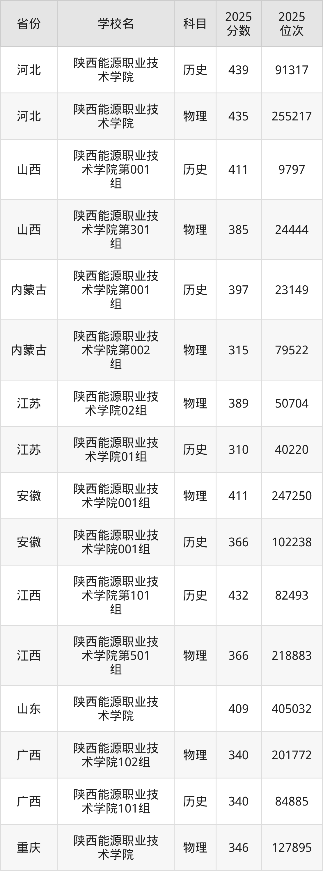下面是陕西能源职业技术学院2025年录取分数线各省汇总,一起来了解下吧。