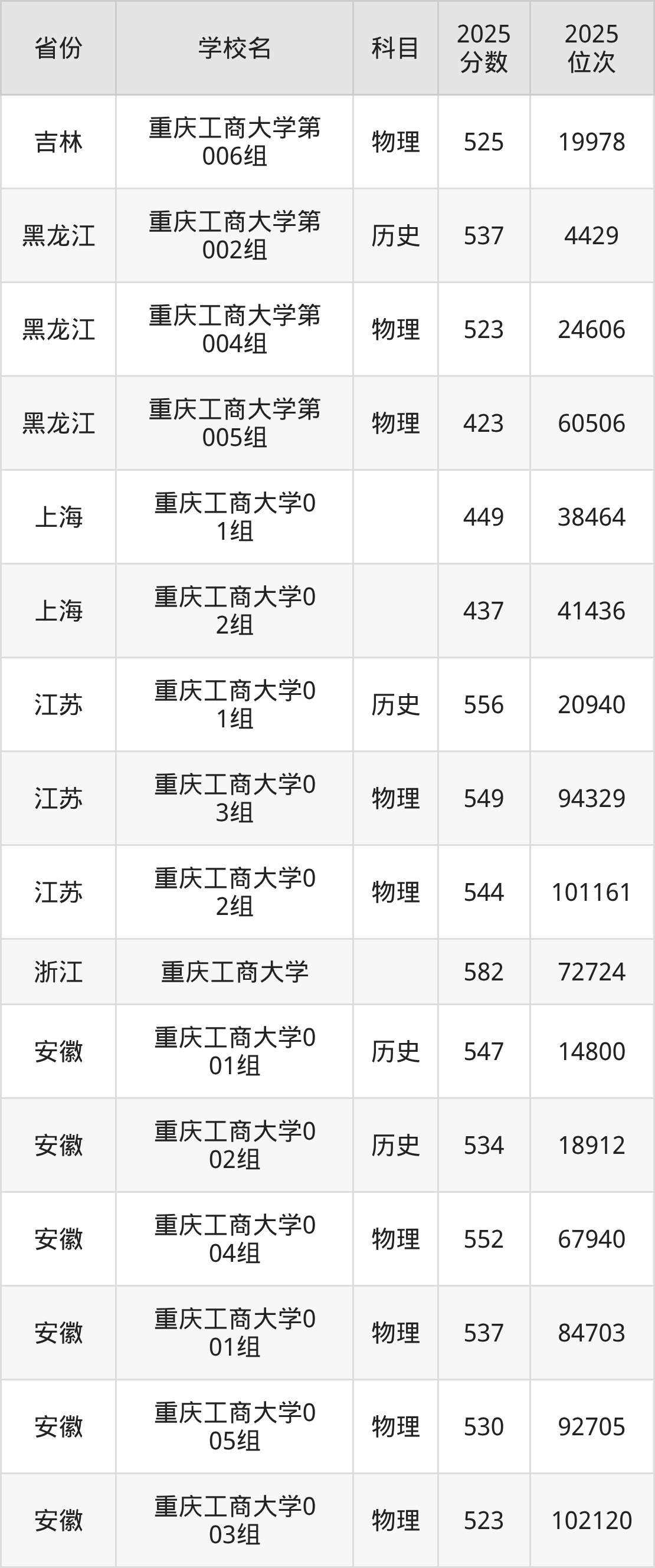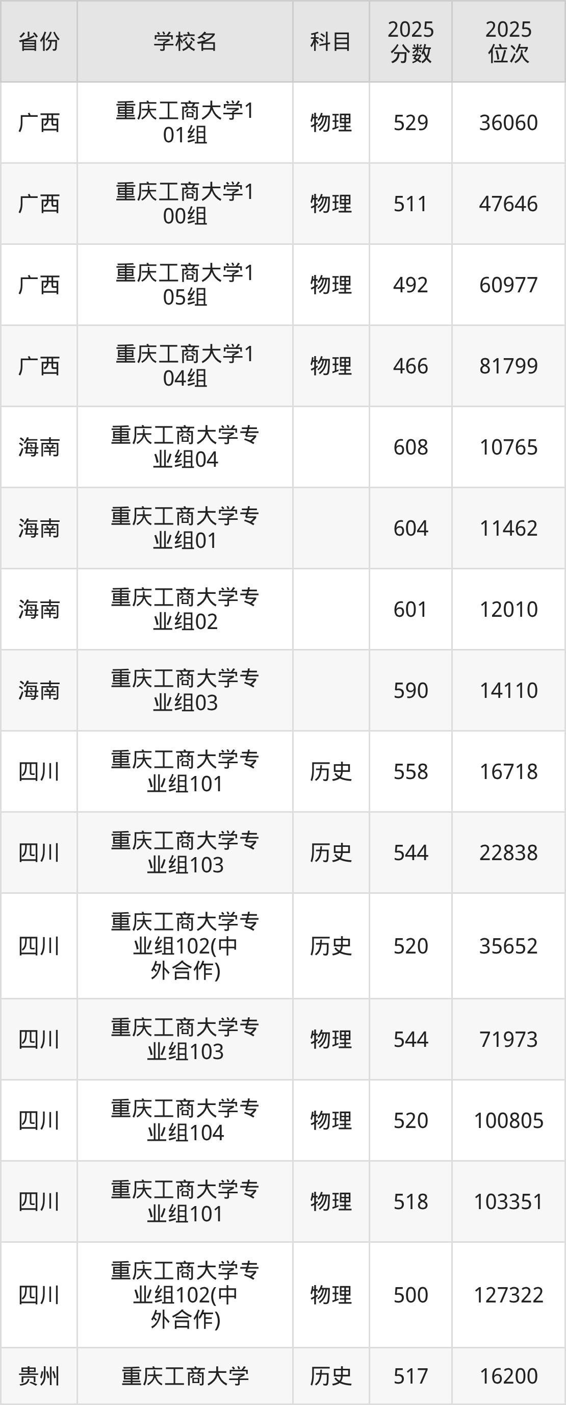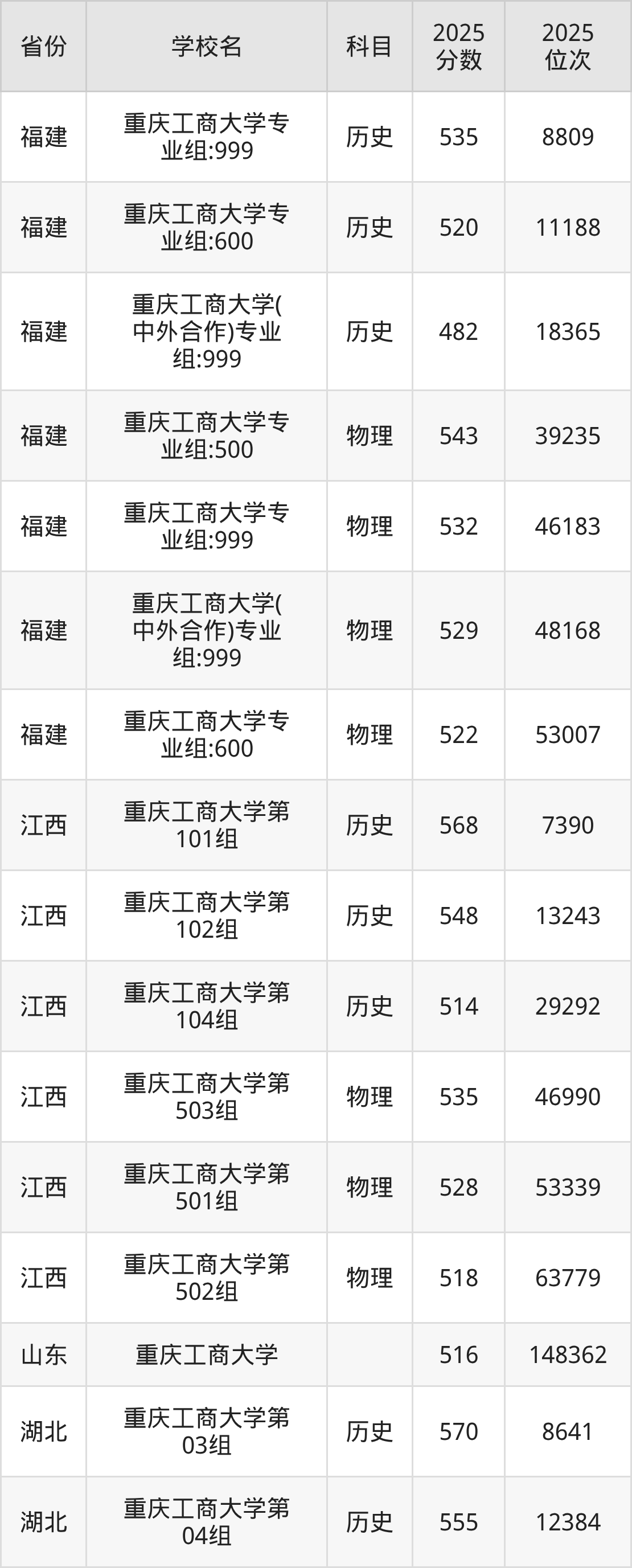 2025年重庆工商大学历史类最低分488分(20863名)、物理类最低分465分(83220名)。
