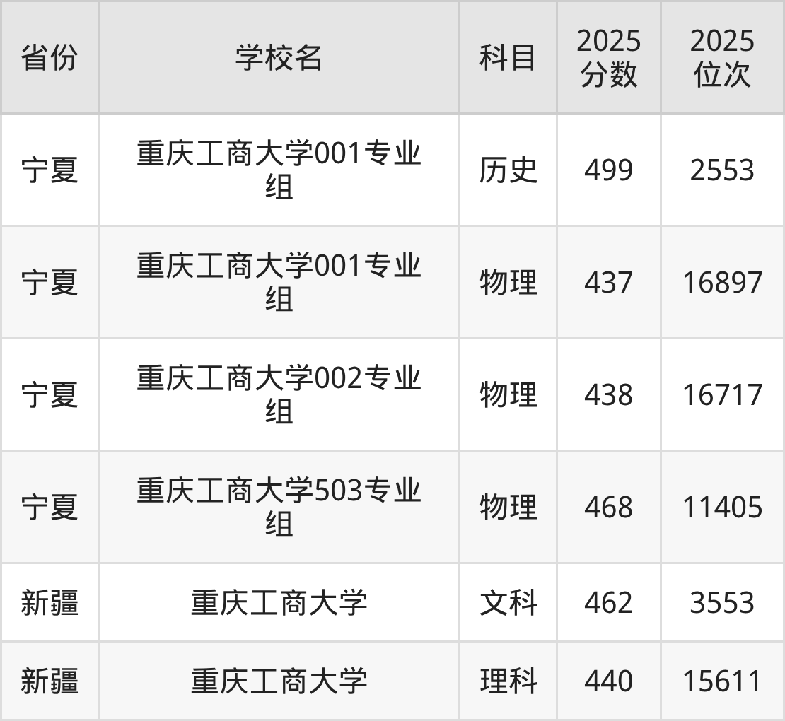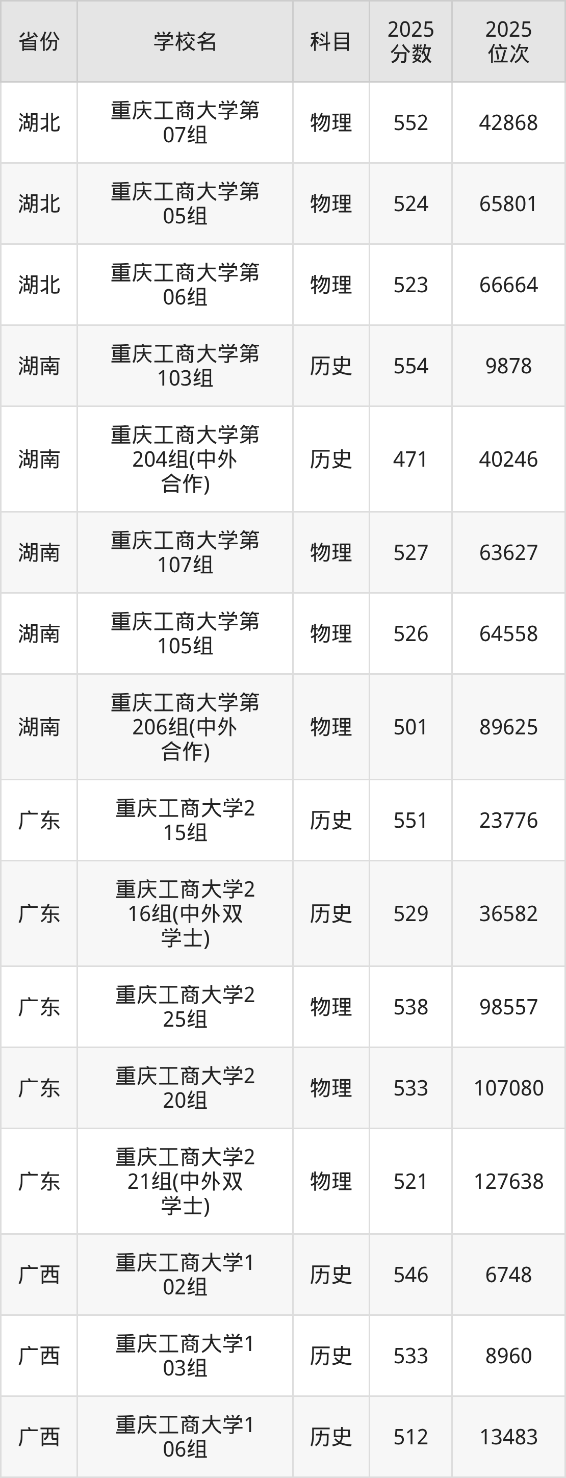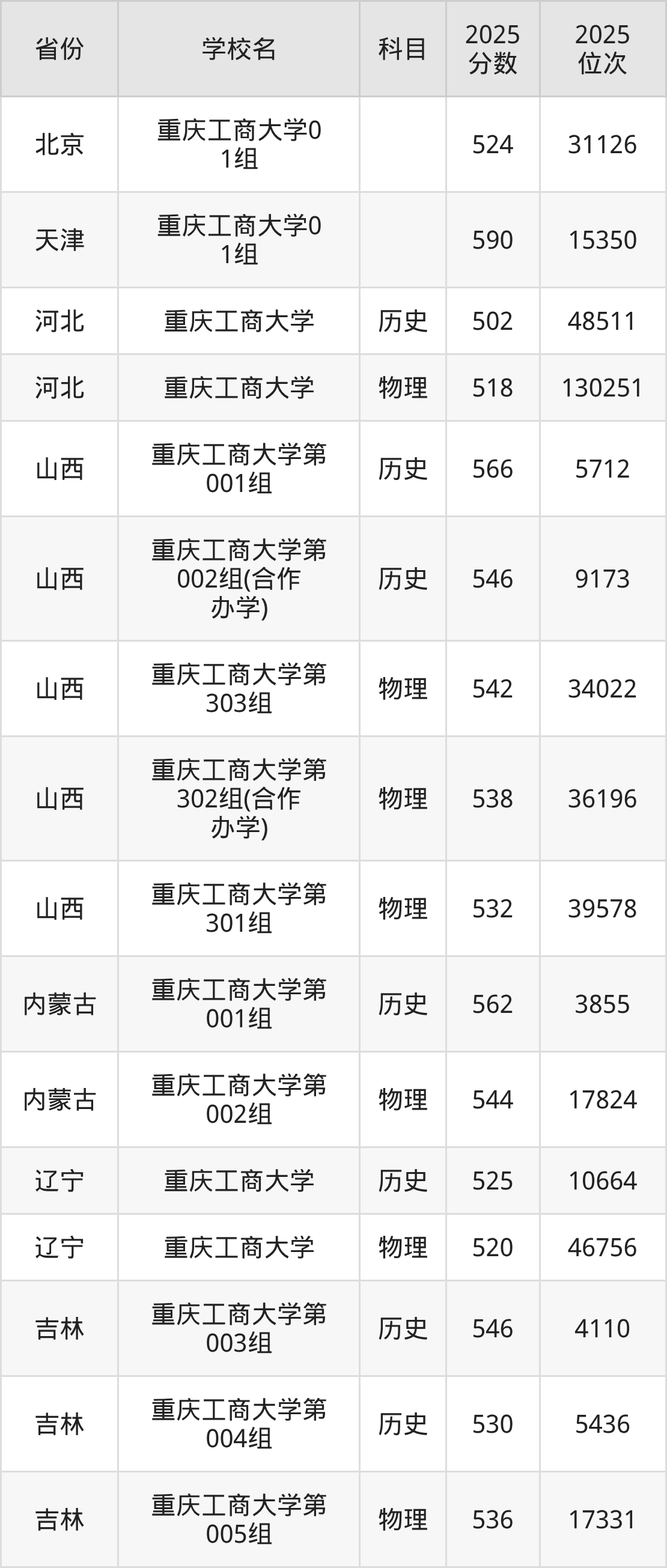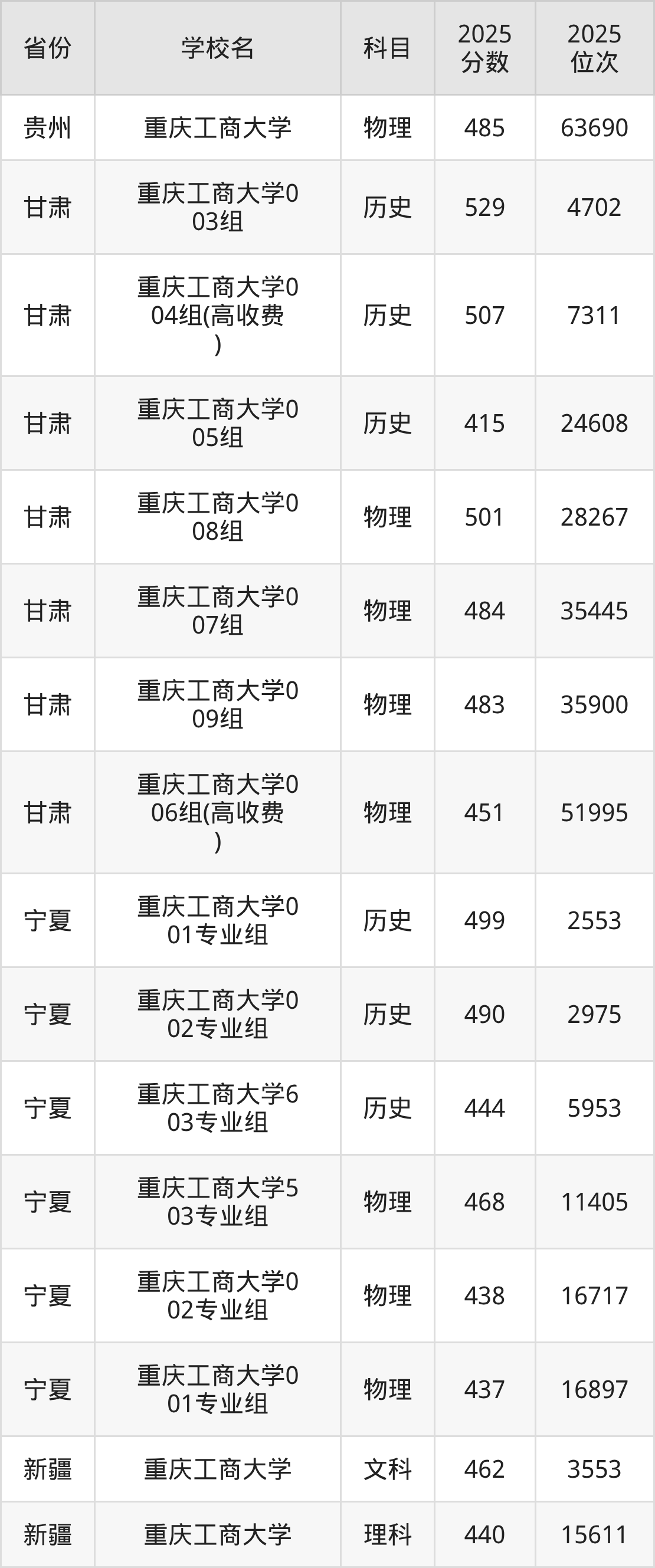 2025年重庆工商大学历史类最低分488分(20863名)、物理类最低分465分(83220名)。