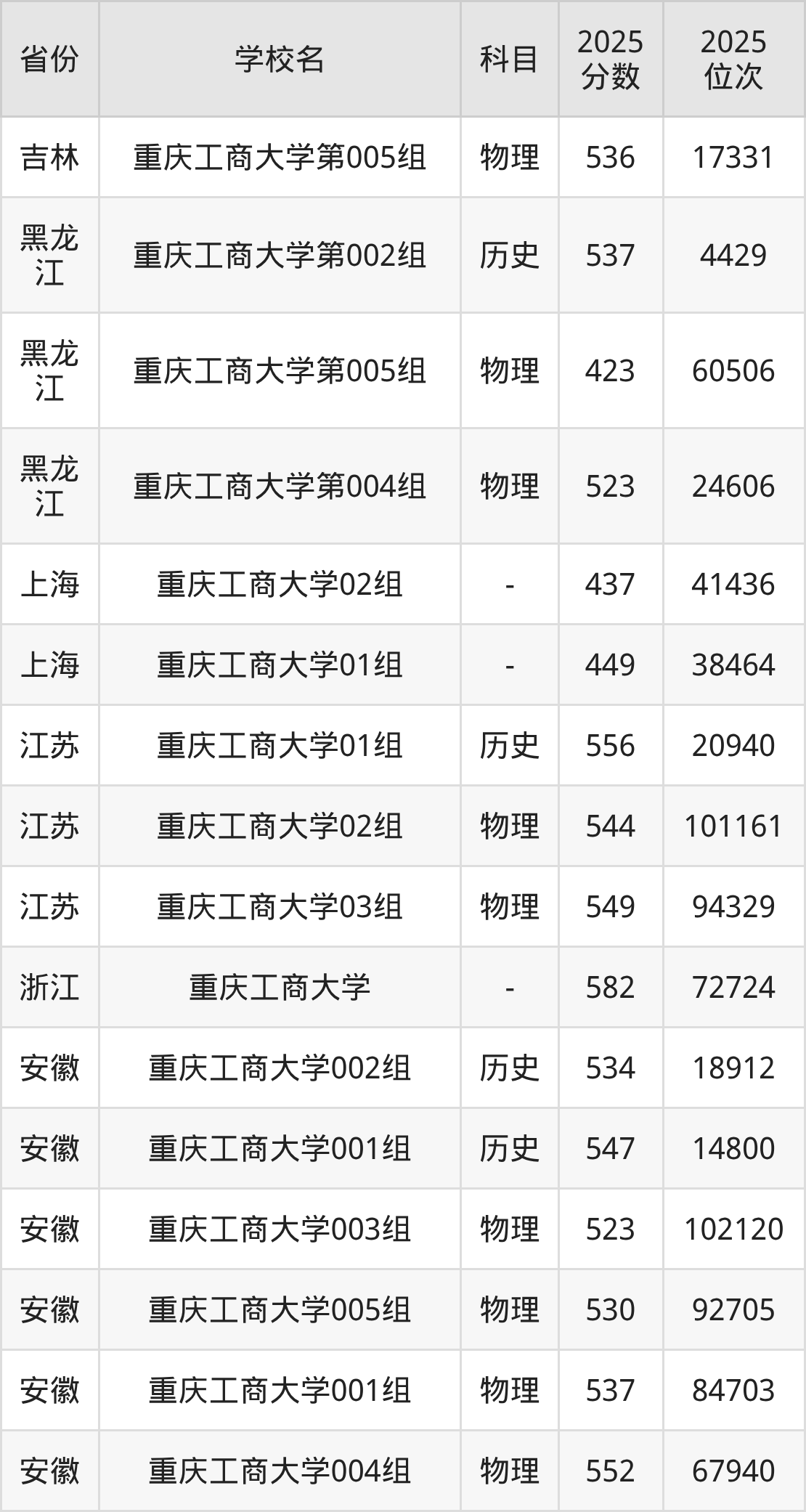 | 学校名 | 科目 | 2025 分数 | 2025 位次 |