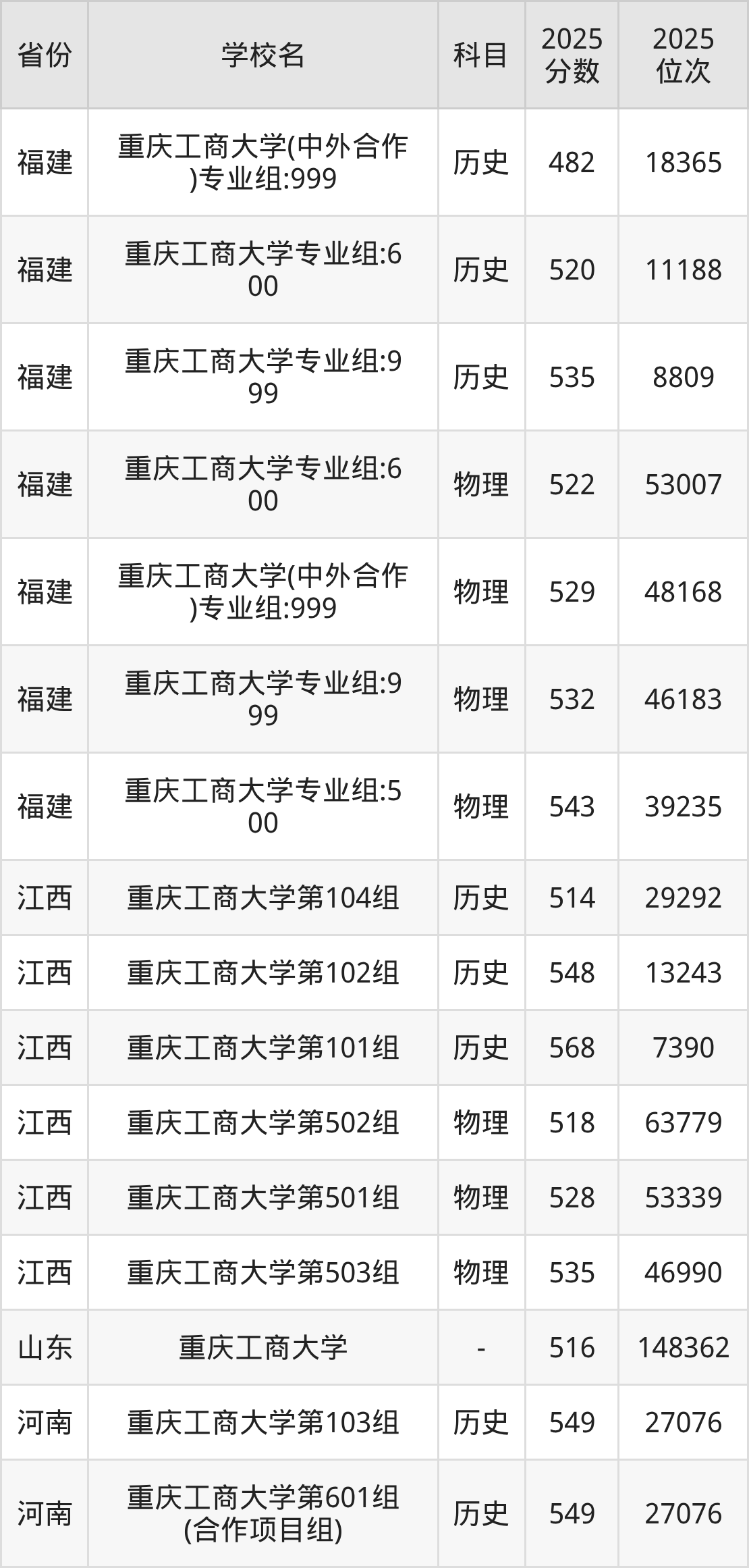 | 重庆工商大学( 地方专项) | 历史 | 516 | 13908 |