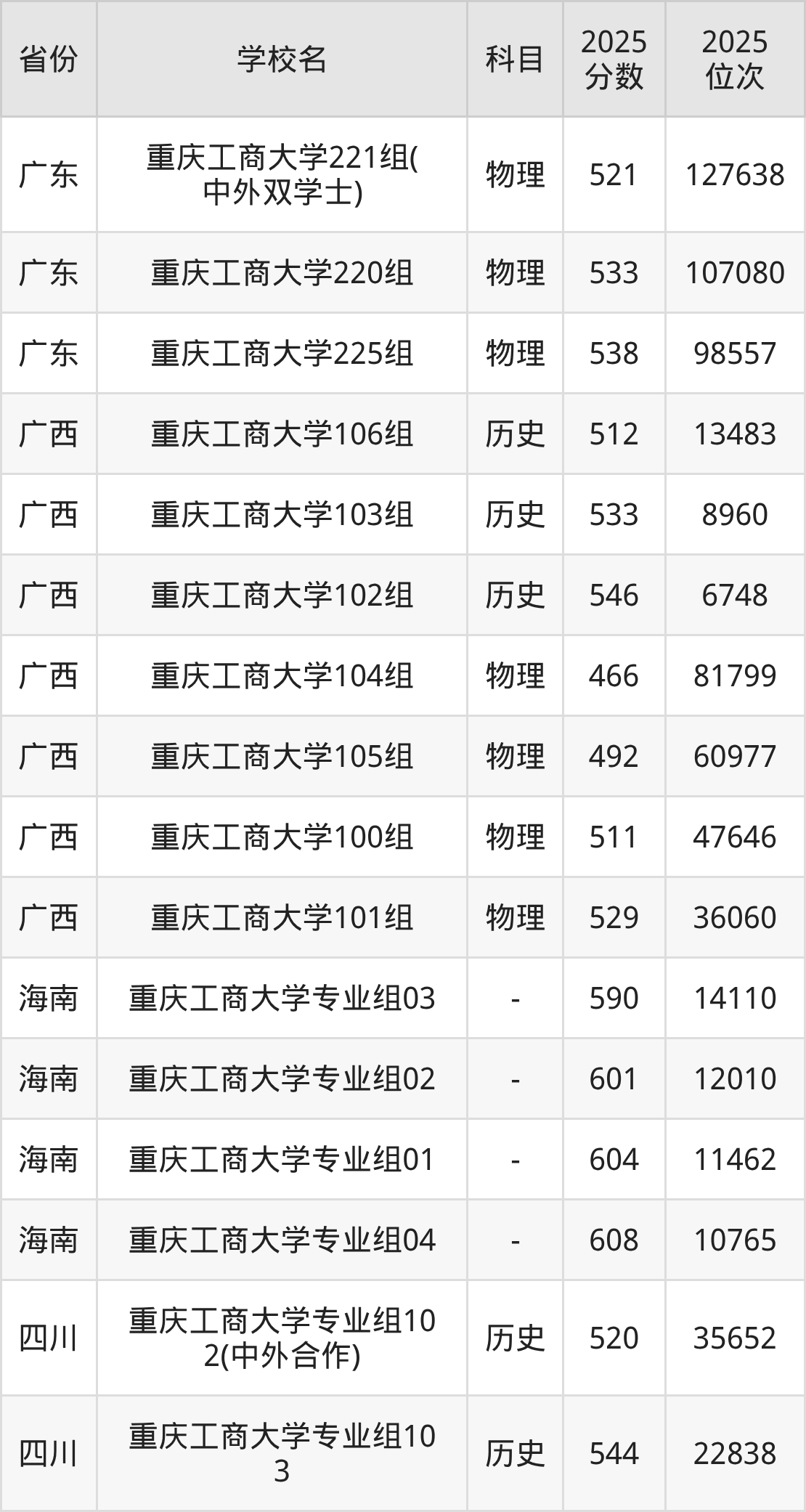 下面是重庆工商大学2025年录取分数线各省汇总,一起来了解下吧。