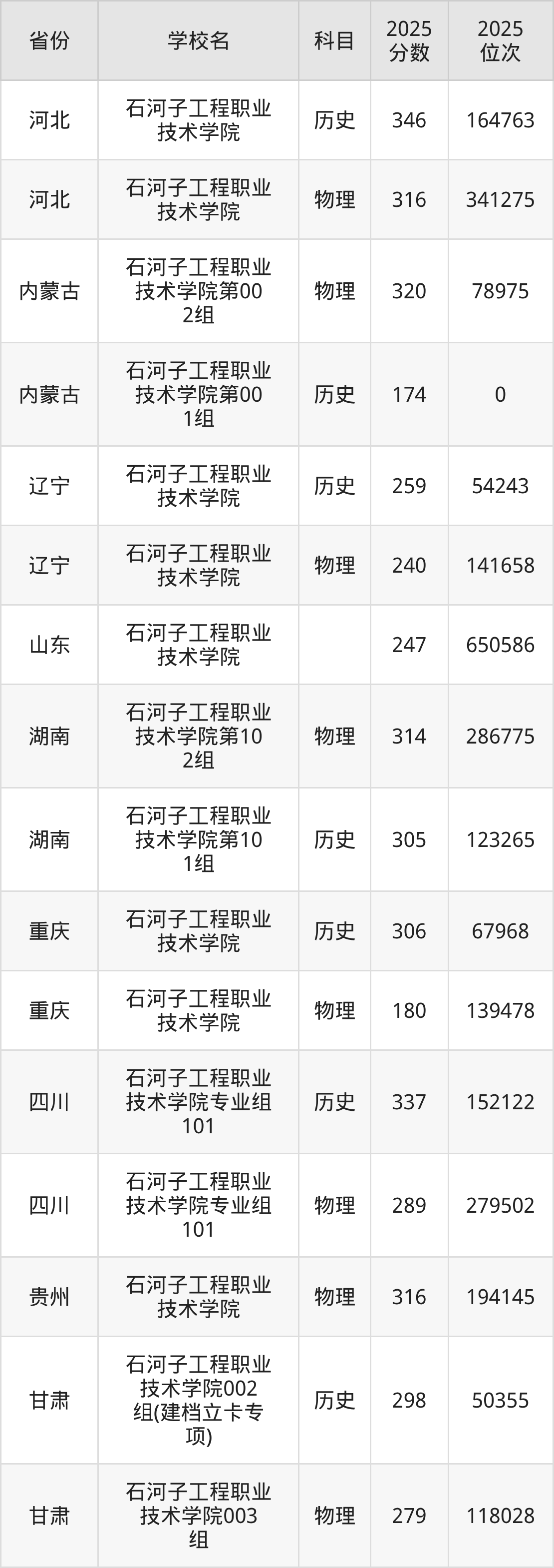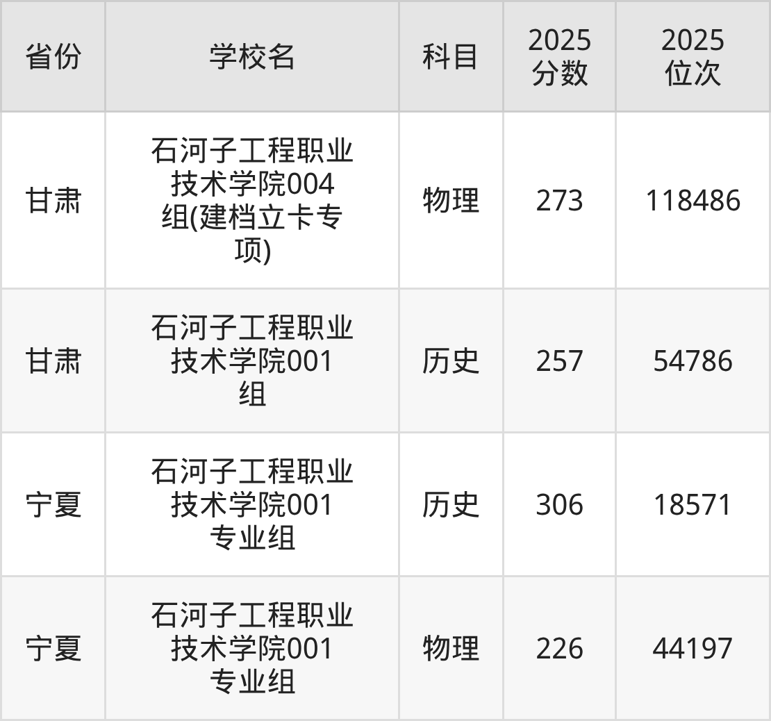 下面是石河子工程职业技术学院2025年录取分数线各省汇总,一起来了解下吧。