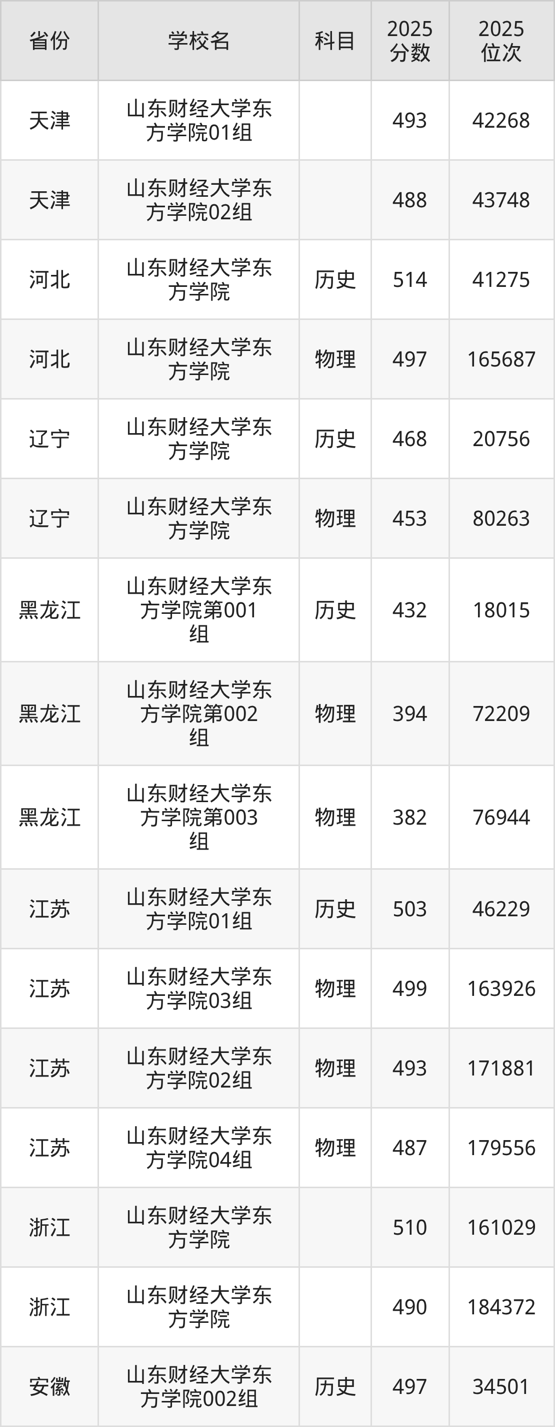 2026年山东财经大学东方学院录取分数线预计在450分及以上,在各省录取最低分存在一定差异,如:2025年山东财经大学东方学院在浙江录取最低分是490分,在山东录取最低分是298分,在辽宁录取最低历史类468分、物理类453分。