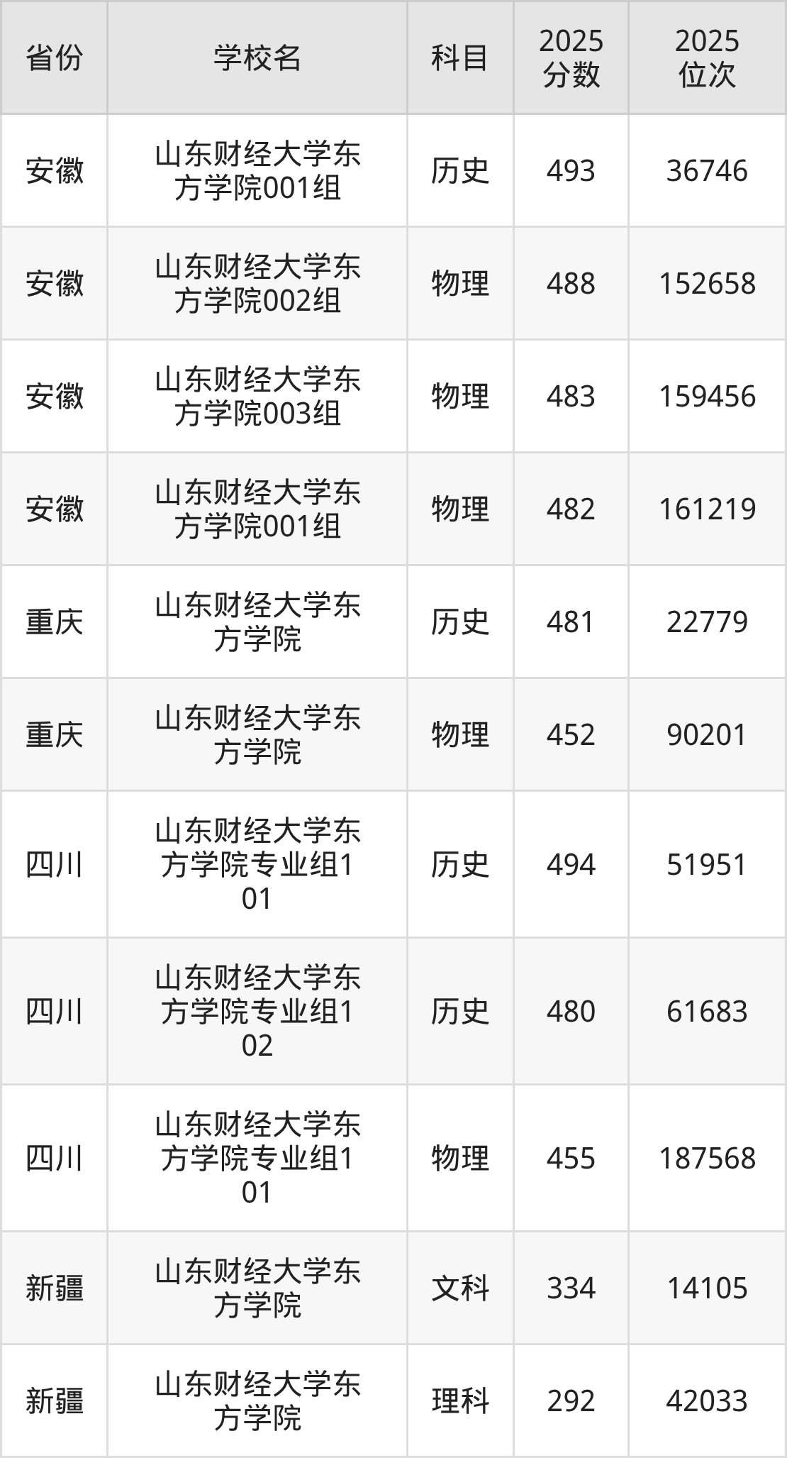 | 山东财经大学东 方学院 | 298 | 601079 |