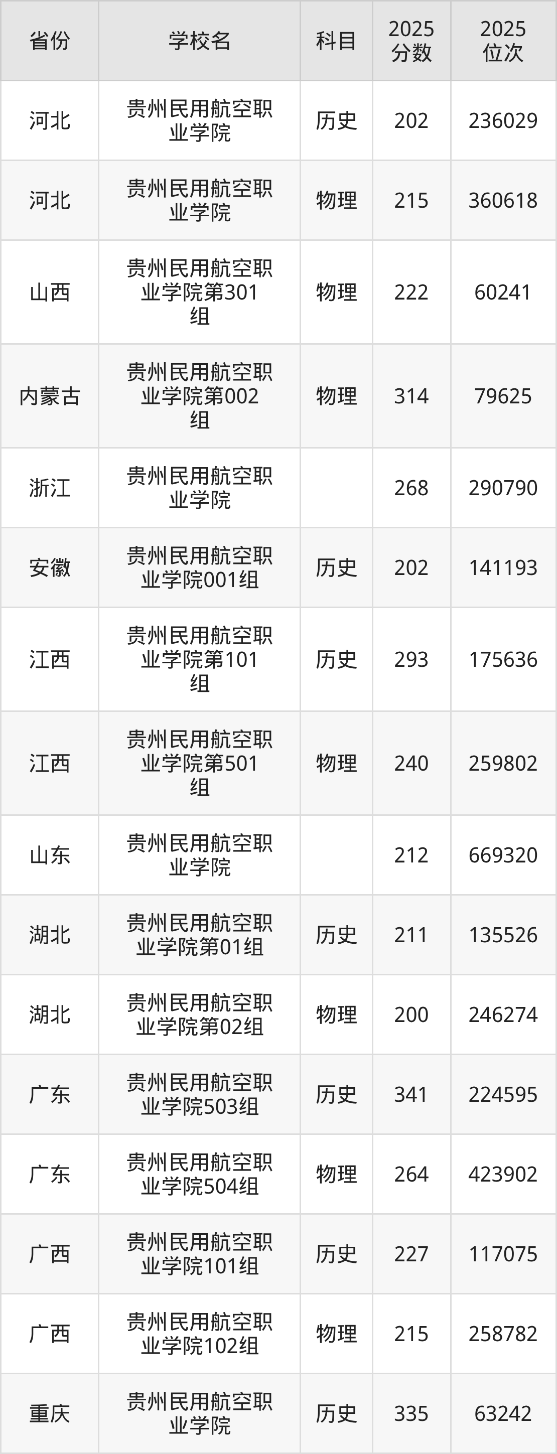 下面是贵州民用航空职业学院2025年录取分数线各省汇总,一起来了解下吧。