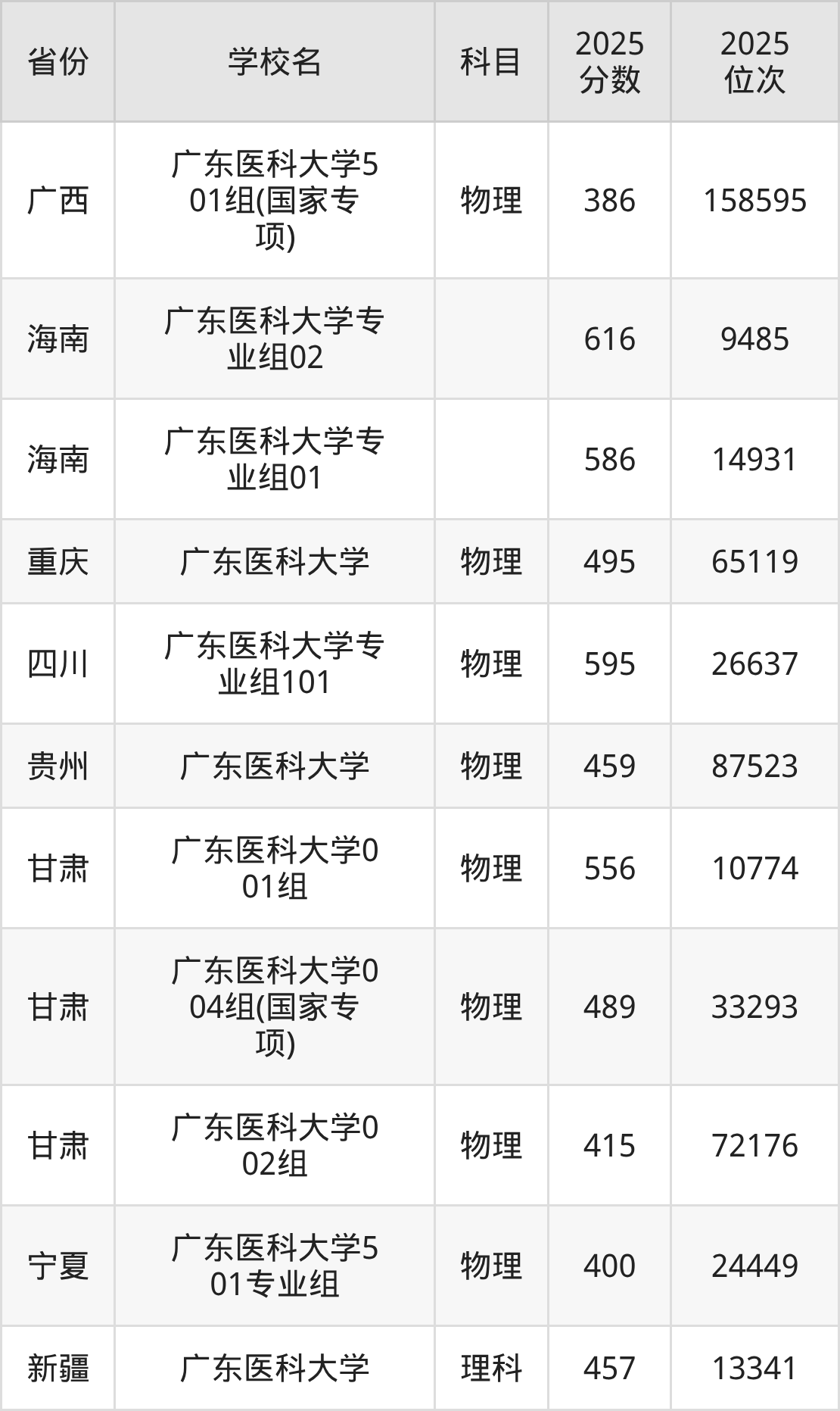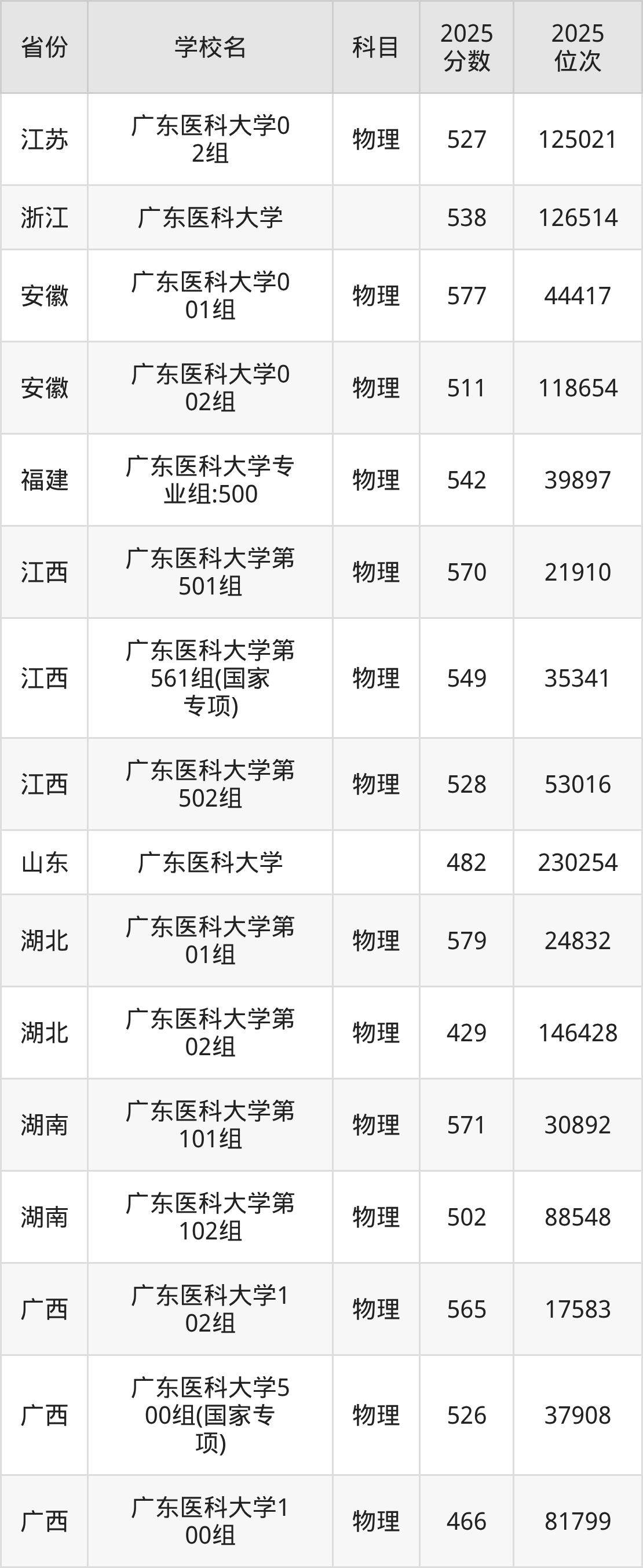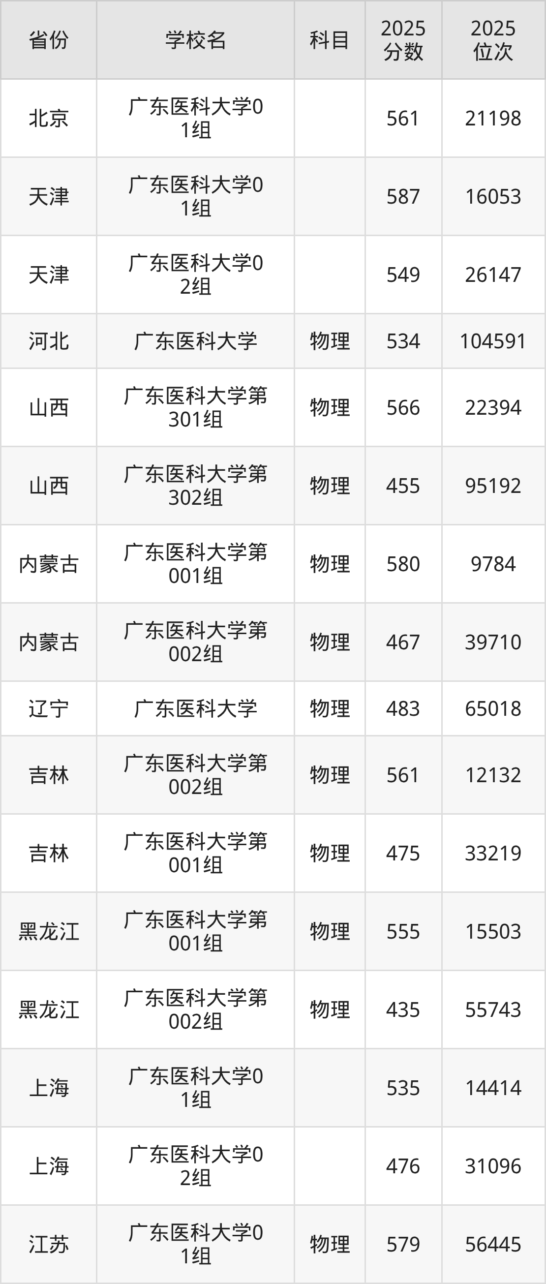 2025年广东医科大学历史类最低分535分(32660名)、物理类最低分507分(152008名)。
