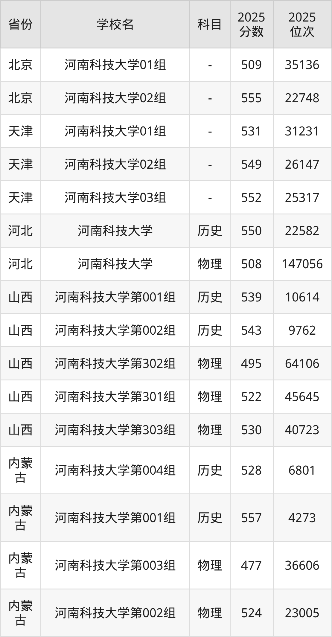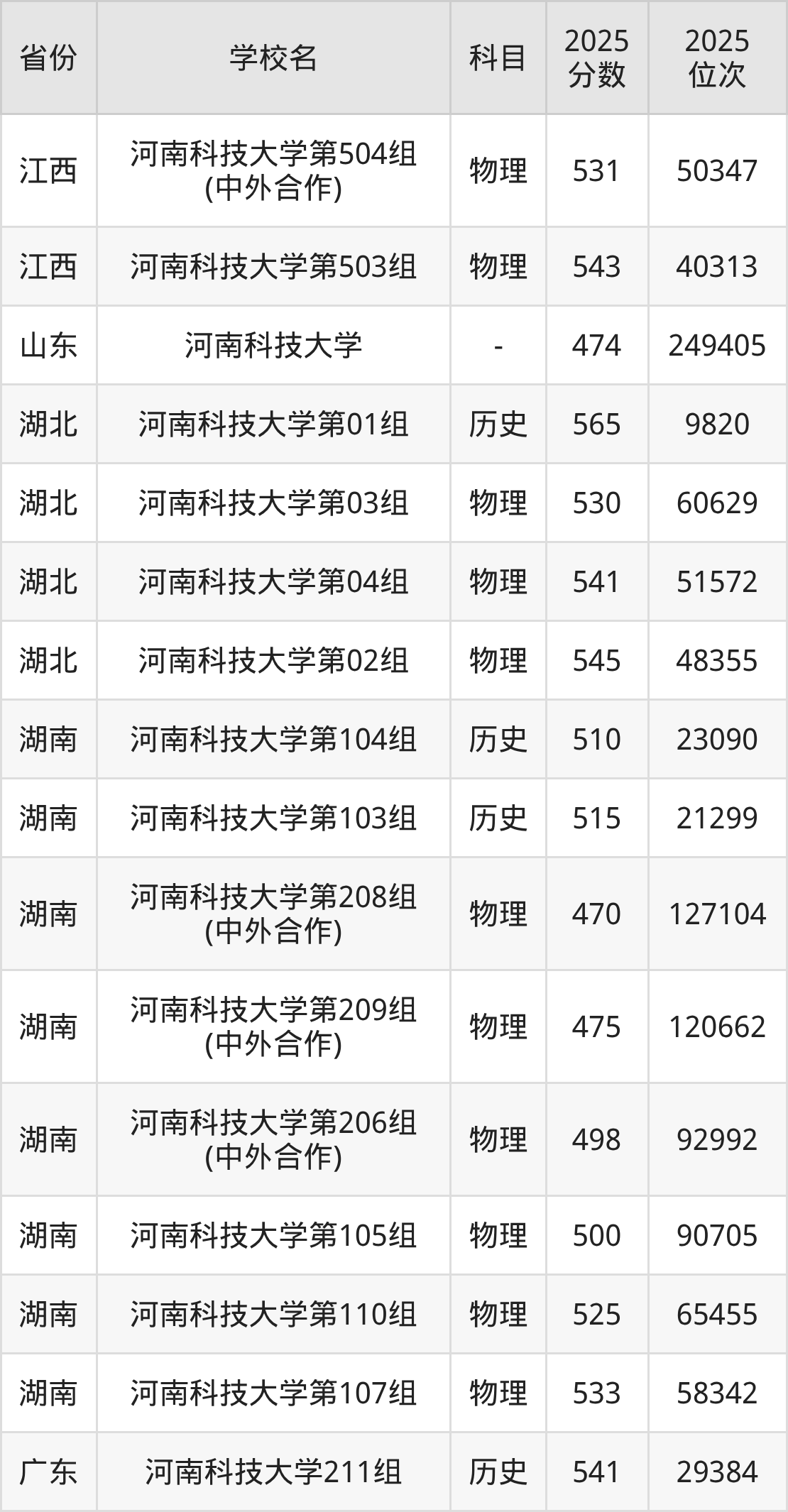 下面是河南科技大学2025年录取分数线各省汇总,一起来了解下吧。