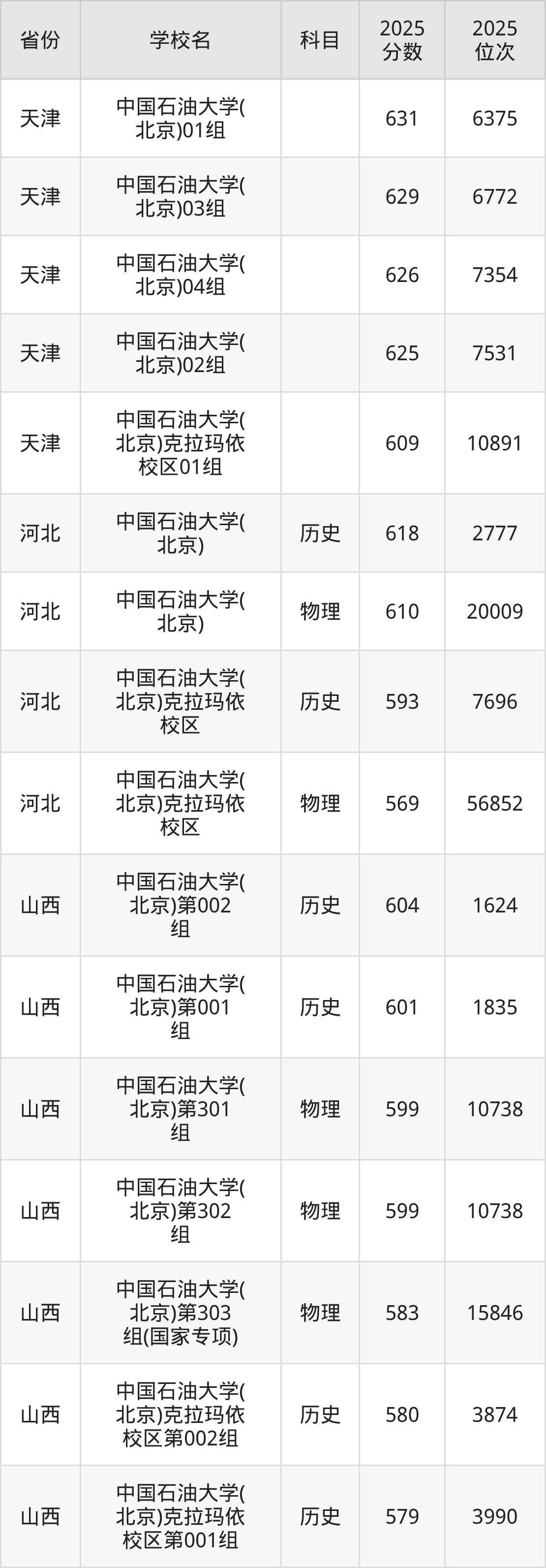 下面是中国石油大学(北京)2025年录取分数线各省汇总,一起来了解下吧。