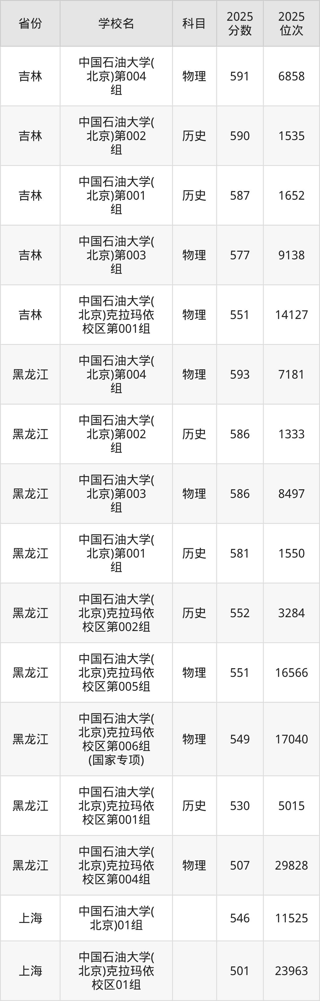 2025年中国石油大学(北京)在市内,最低分是569分、对应位次是19221名。