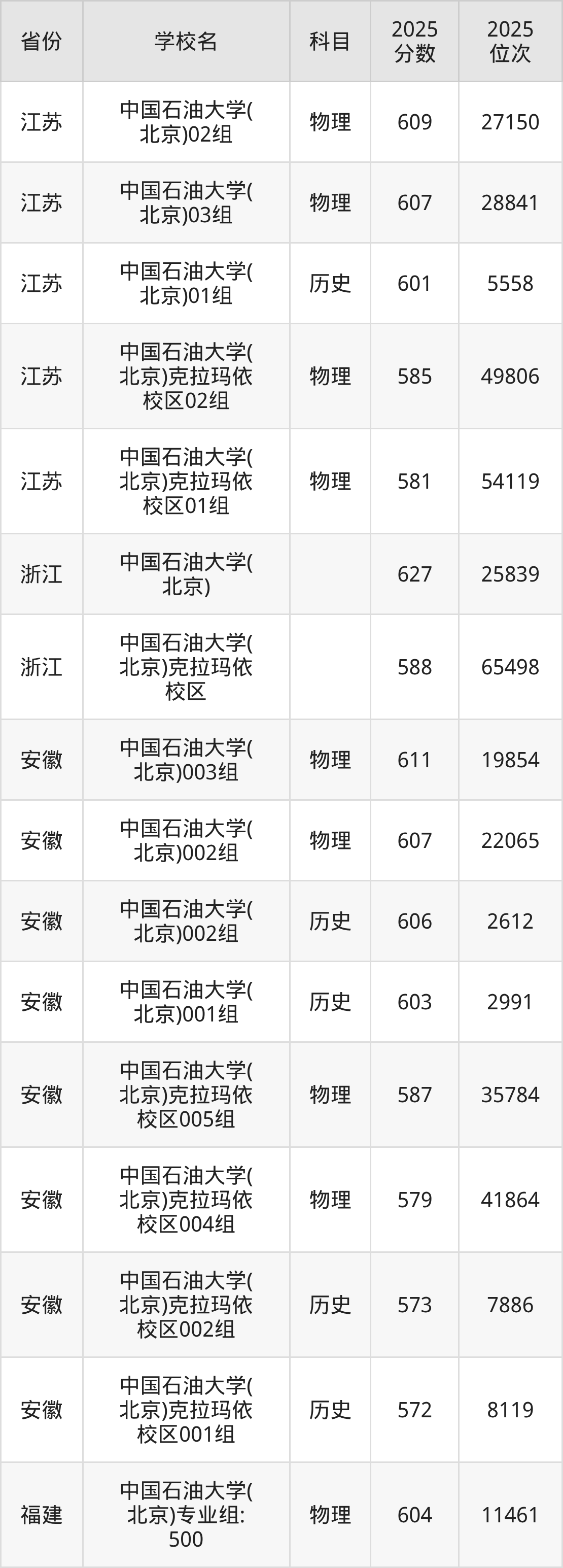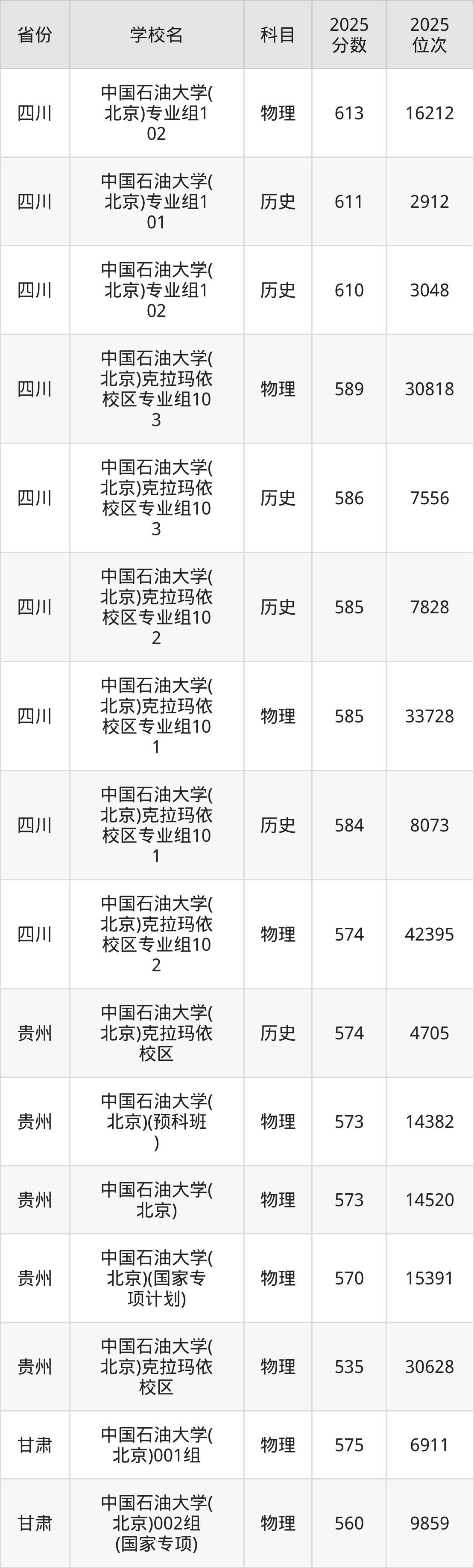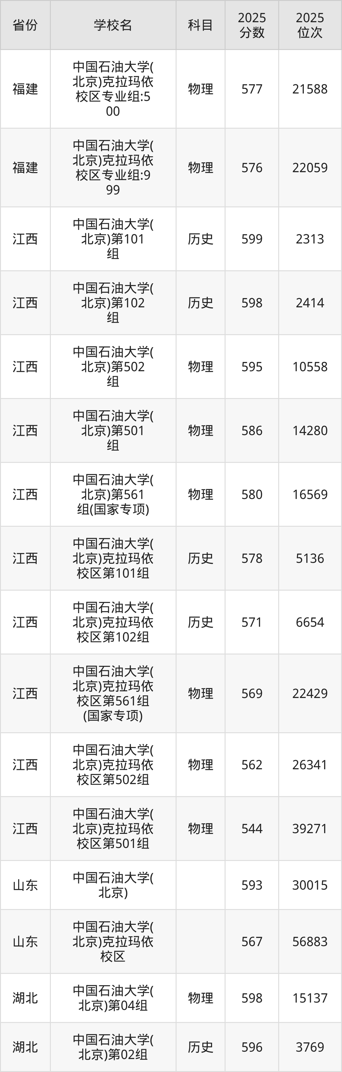 2025年中国石油大学(北京)最低分569分(19221名)。