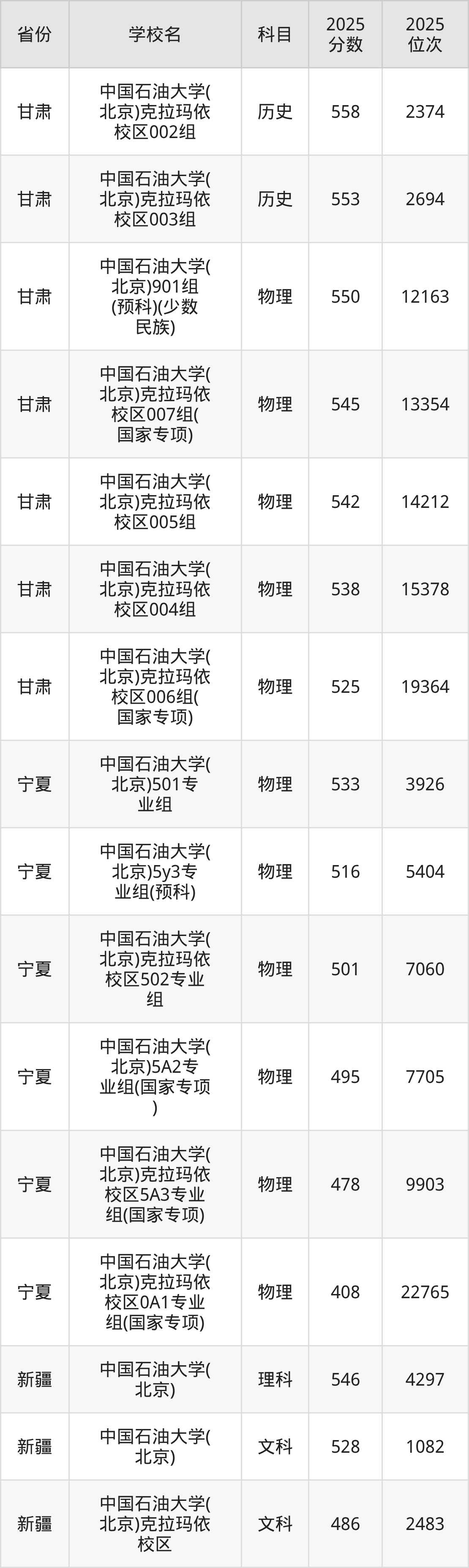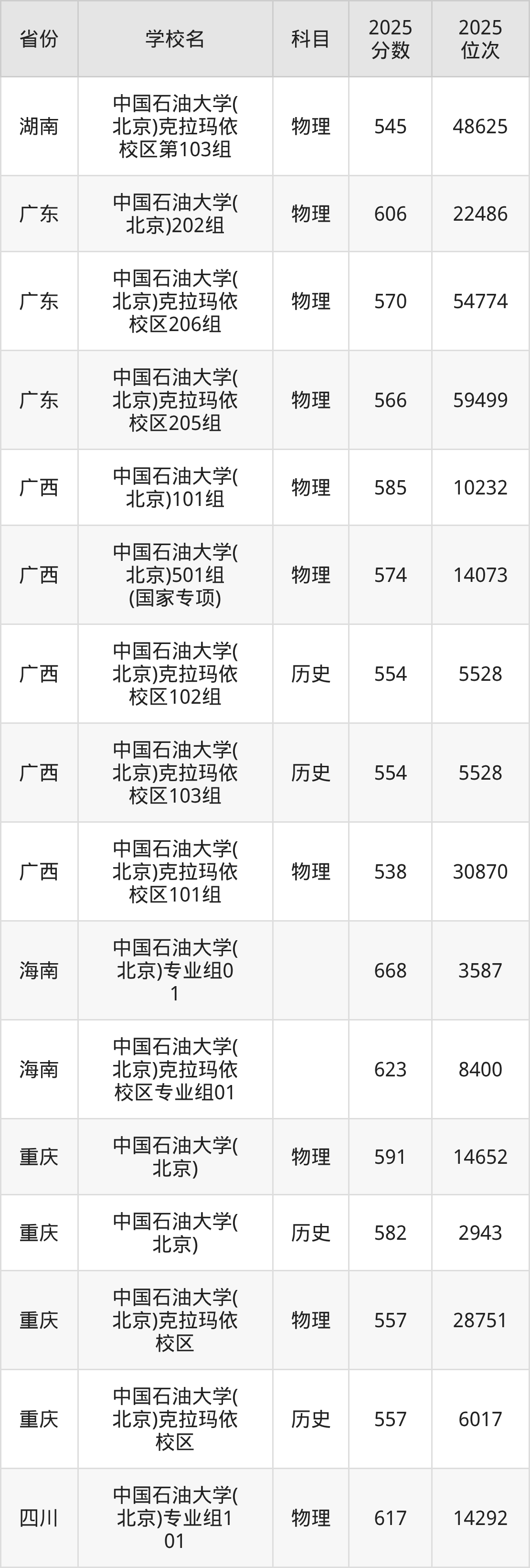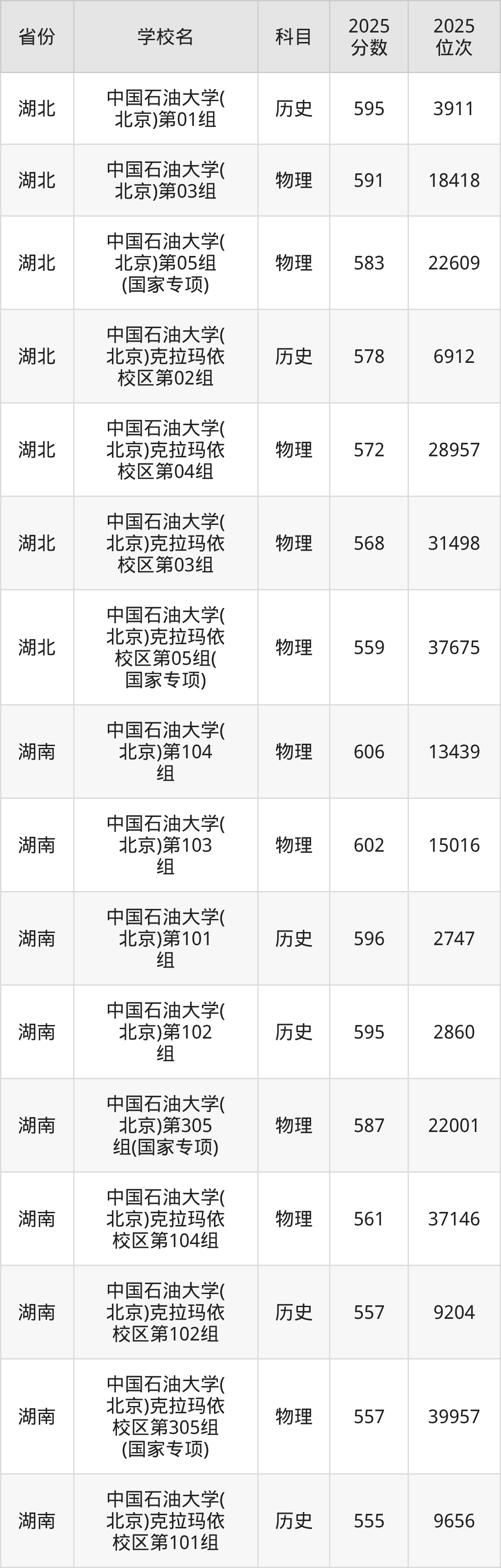 2025年中国石油大学(北京)最低分569分(19221名)。