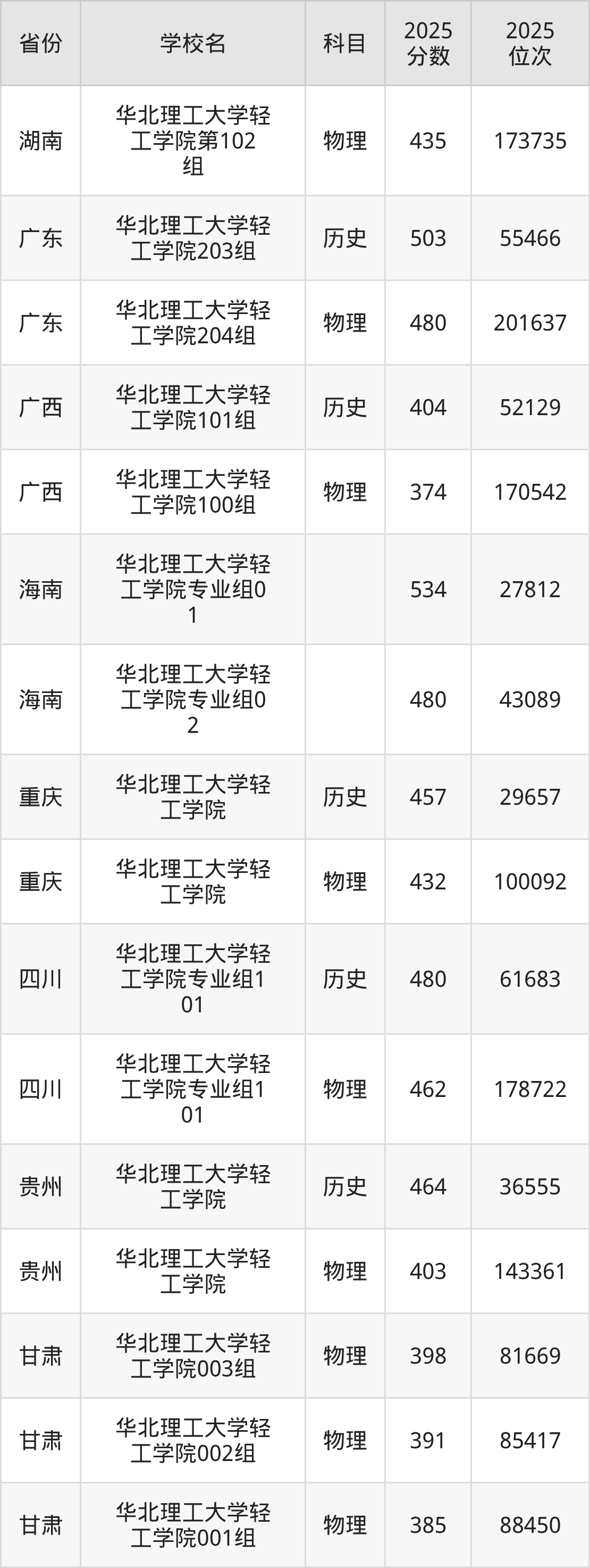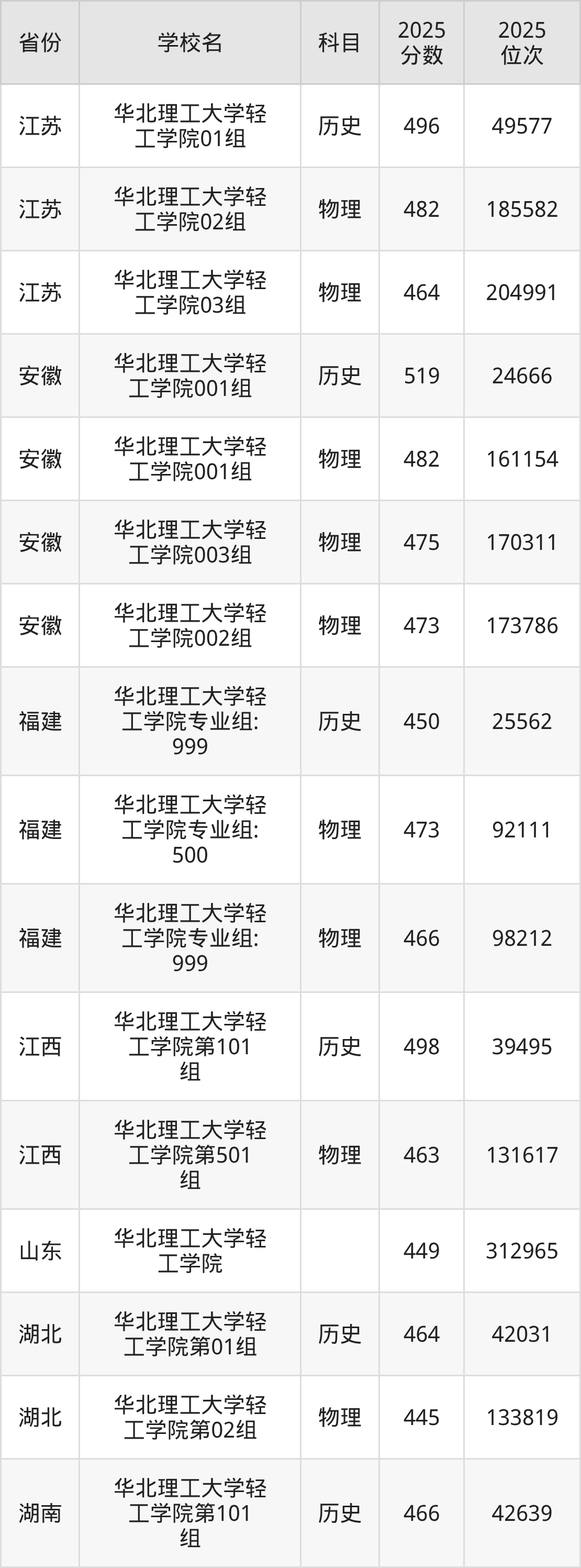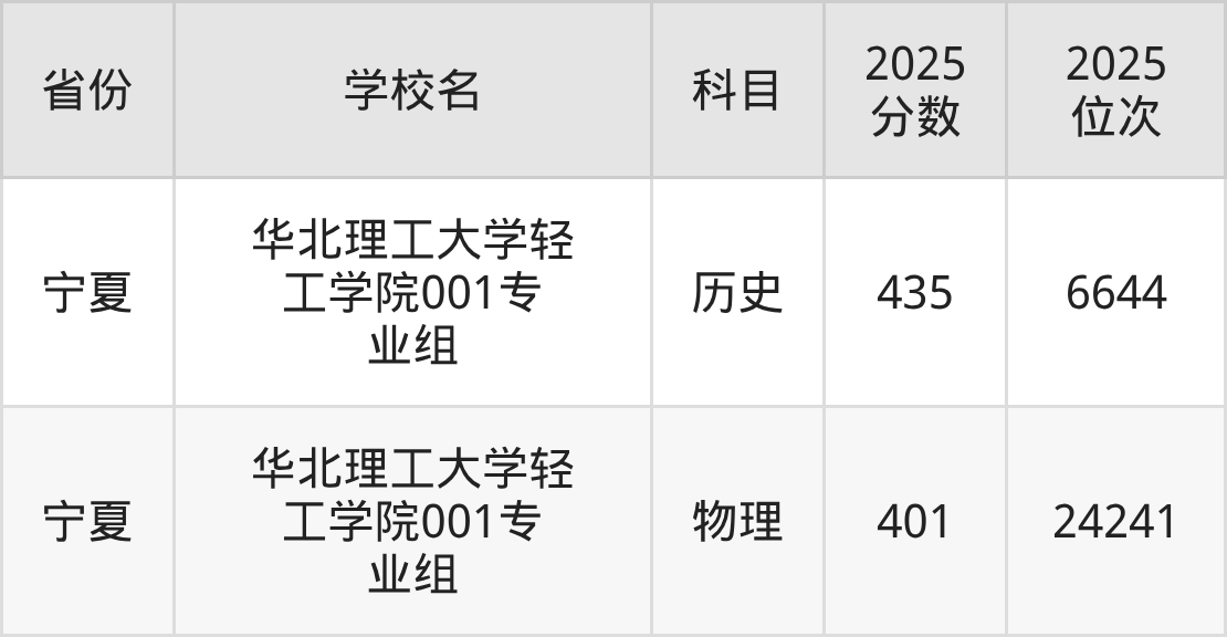 | 华北理工大学轻 工学院 | 物理 | 460 | 222850 |