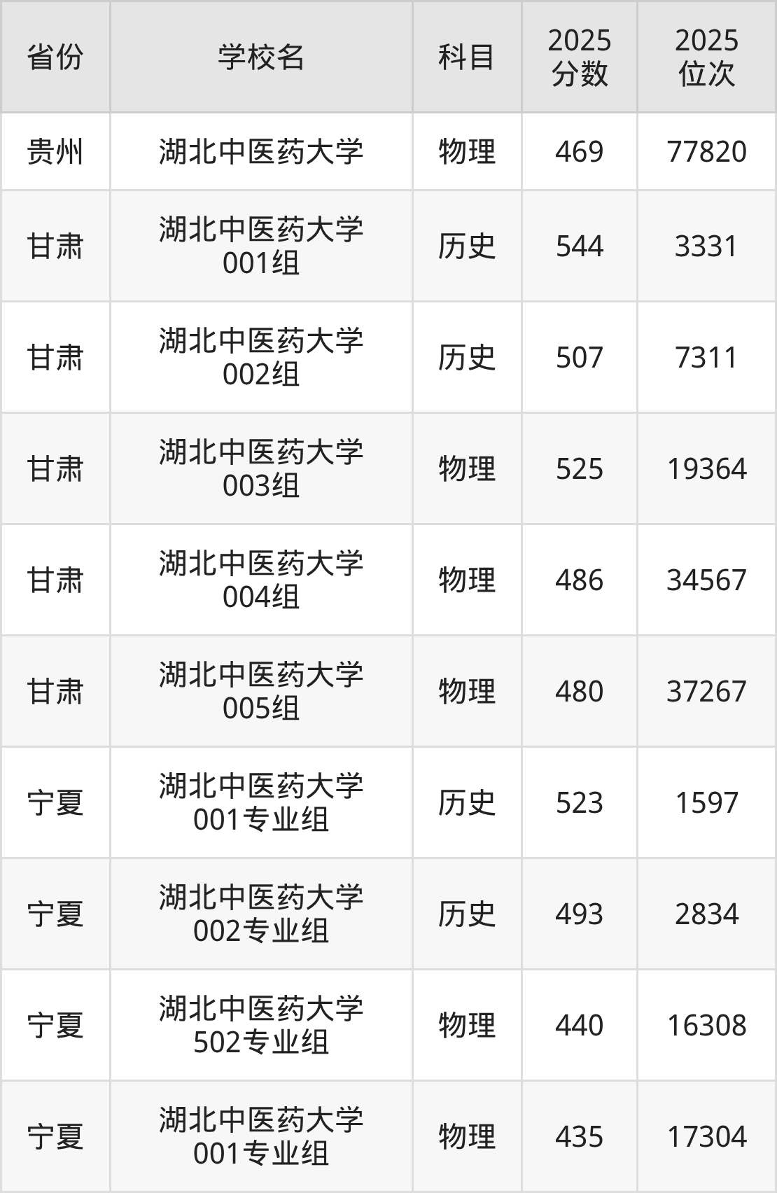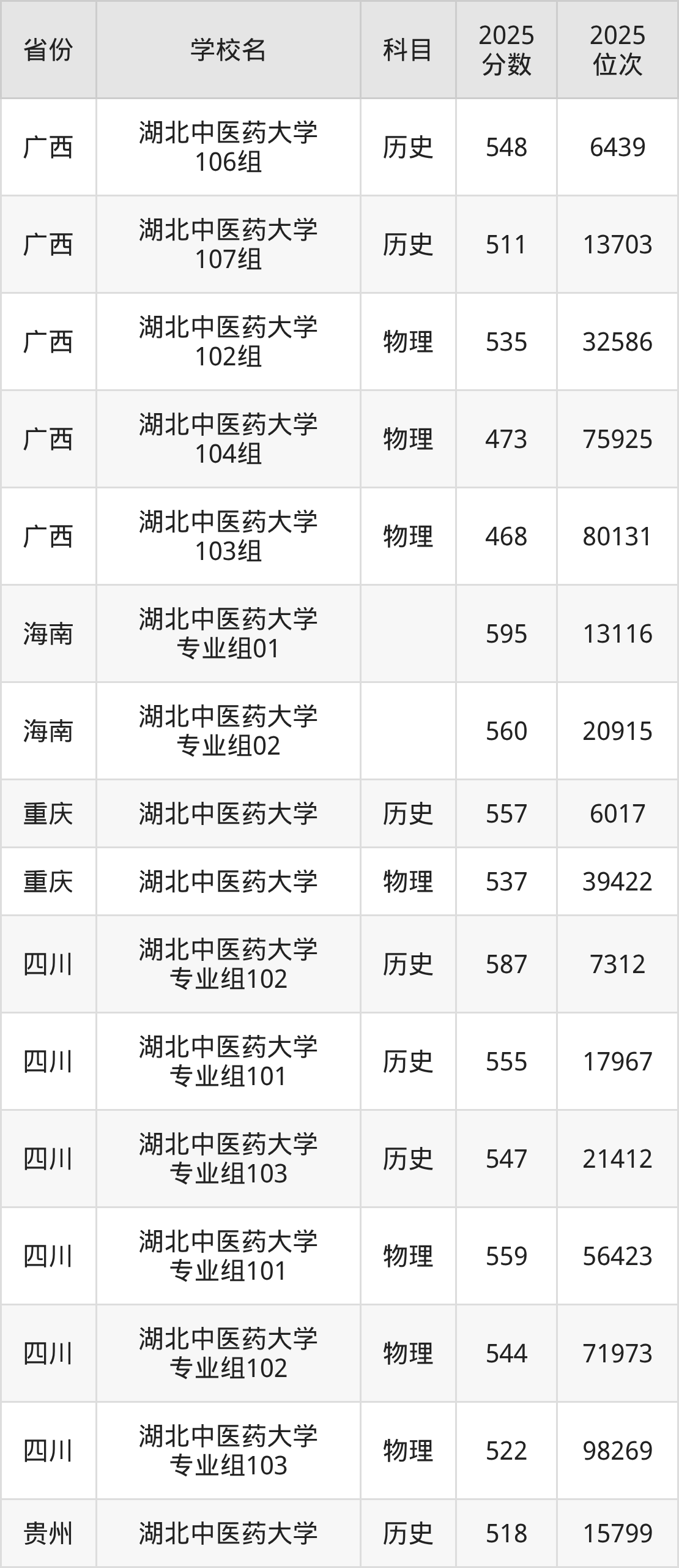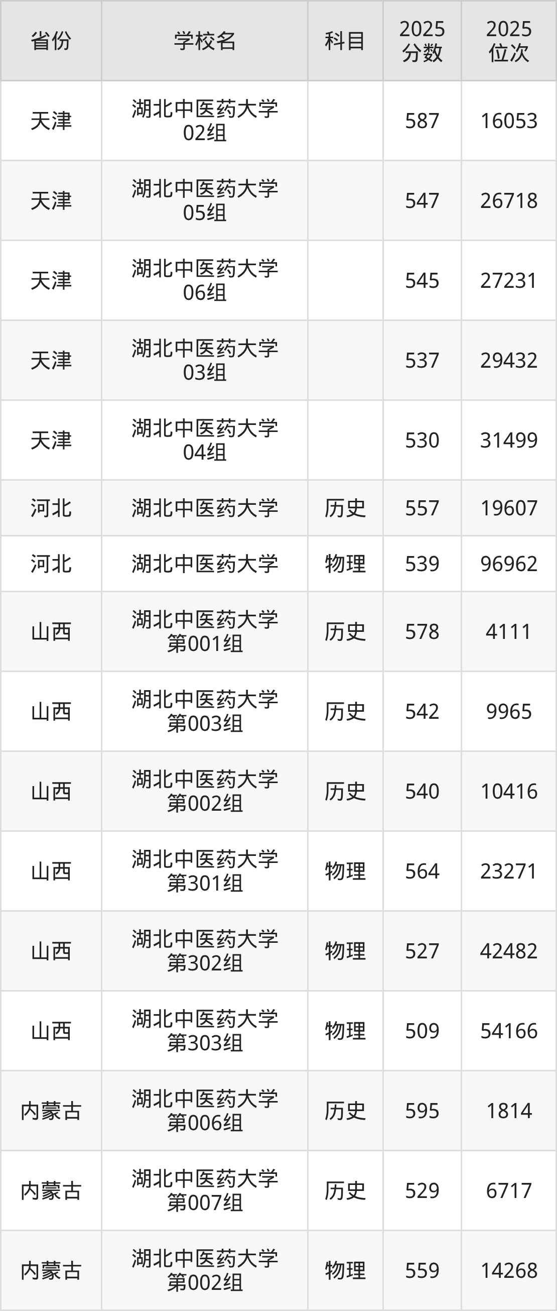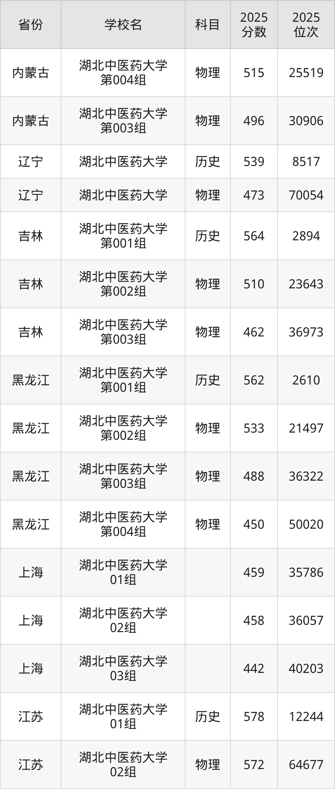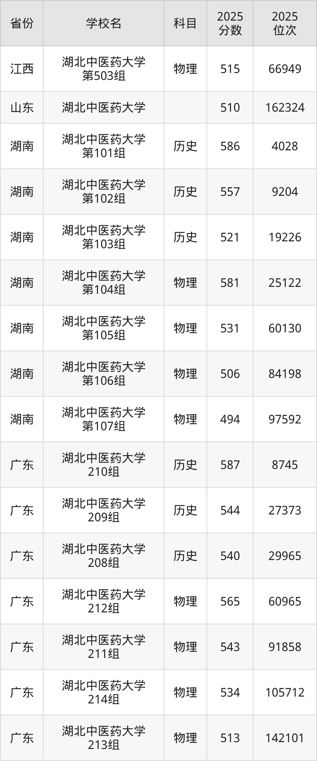 | 湖北中医药大学 第18组(地方 专项) | 物理 | 508 | 79629 |
