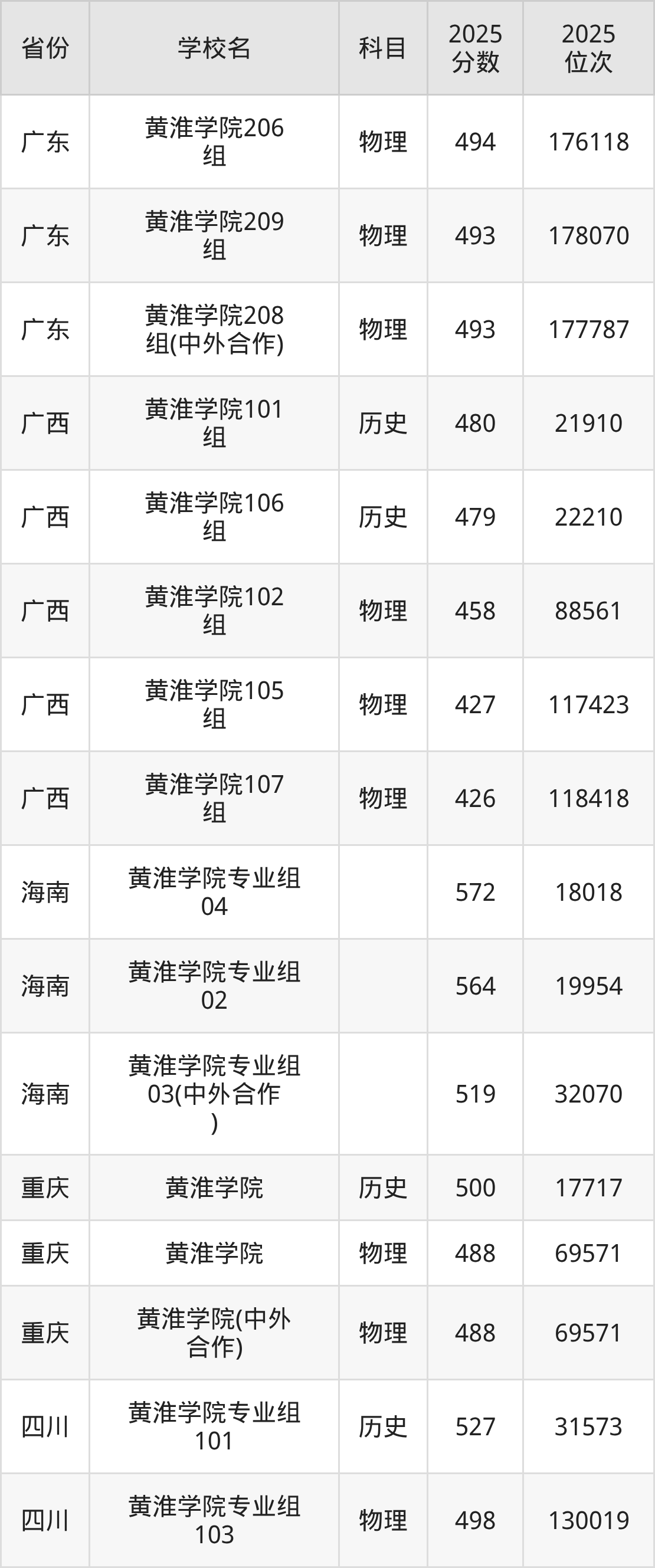 2025年黄淮学院历史类最低分515分(6697名)、物理类最低分409分(52906名)。