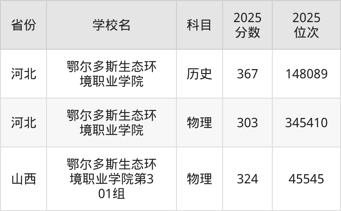 下面是鄂尔多斯生态环境职业学院2025年录取分数线各省汇总,一起来了解下吧。