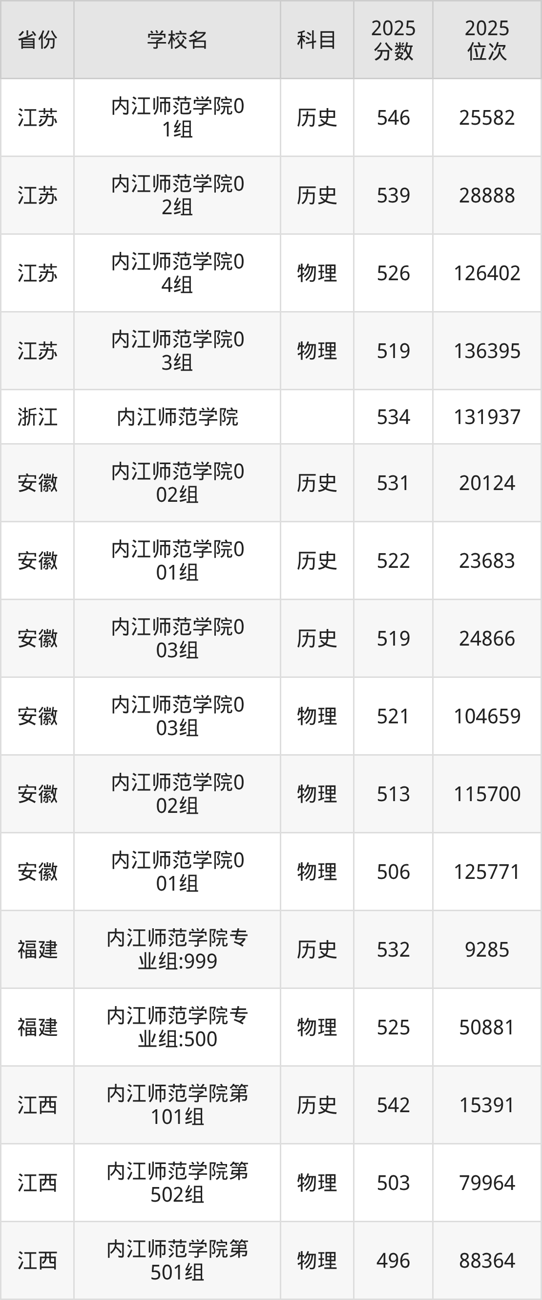 | 内江师范学院专 业组101 | 历史 | 544 | 22838 |