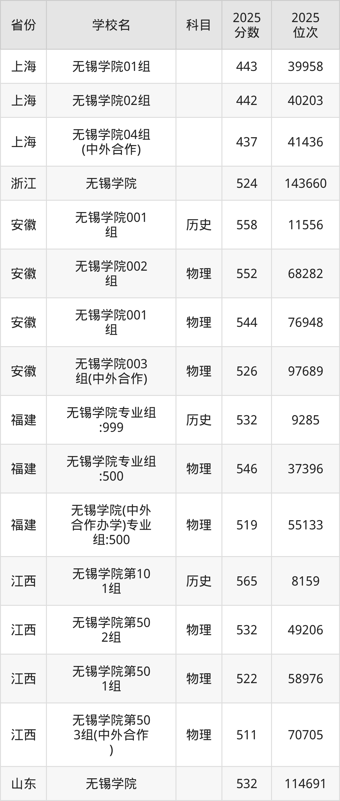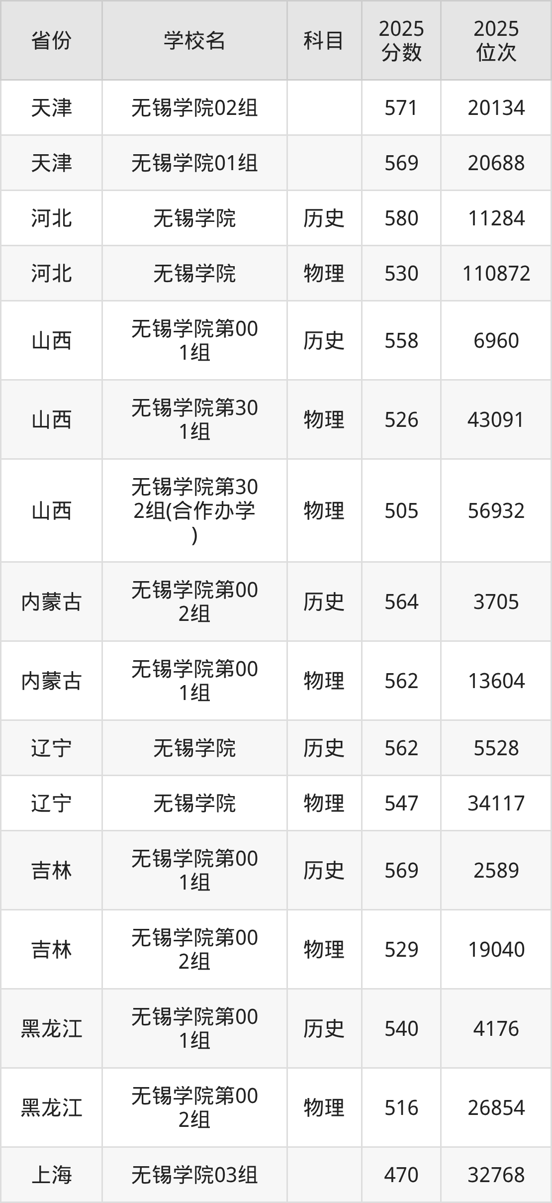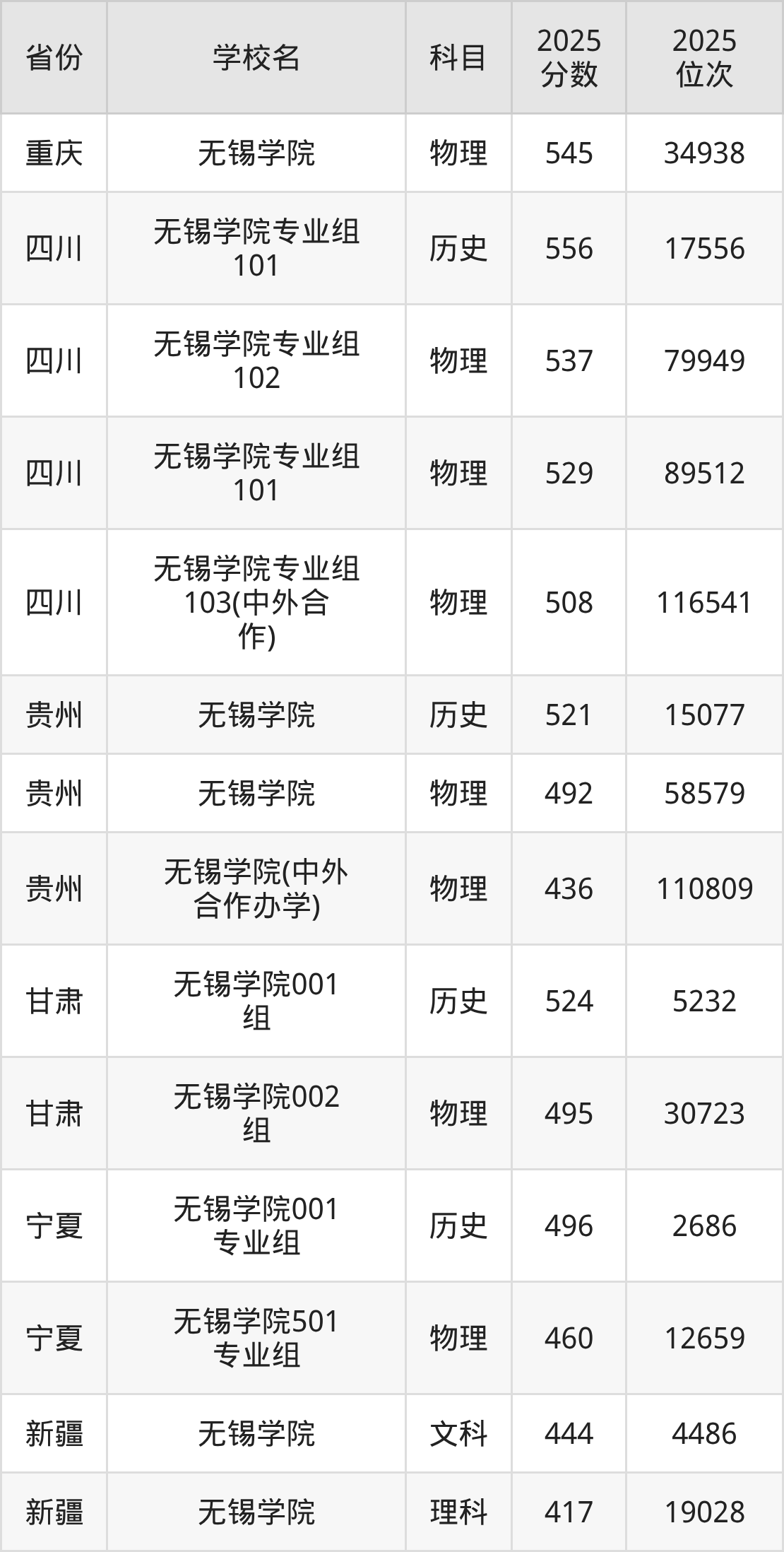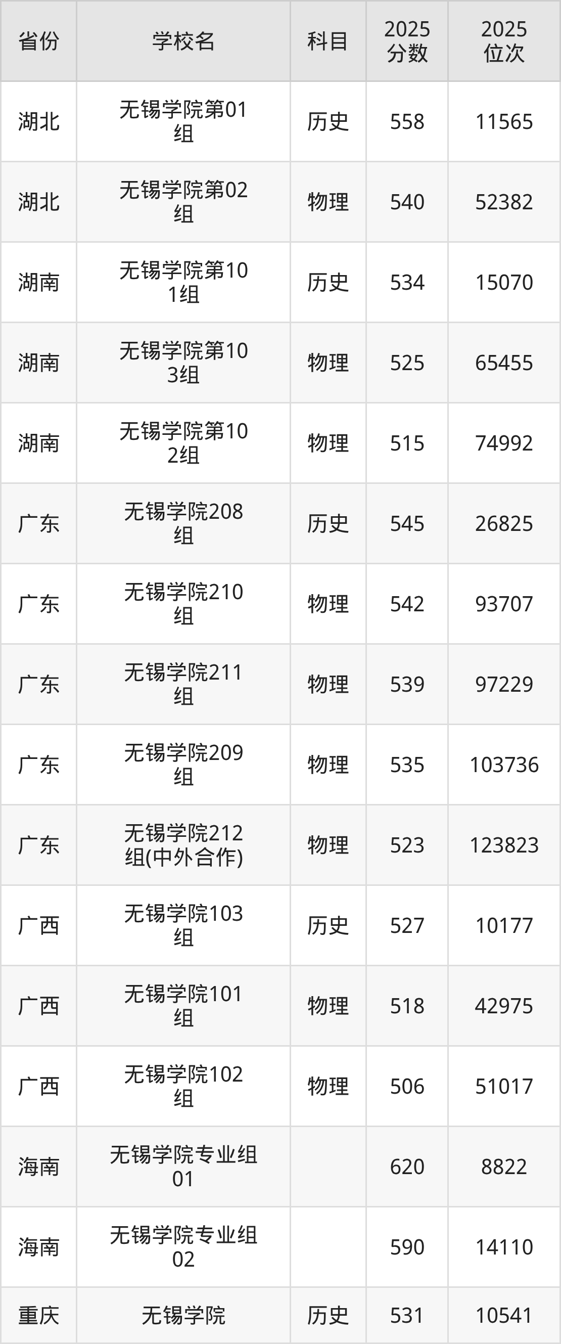 2025年无锡学院历史类最低分558分(20075名)、物理类最低分512分(146160名)。