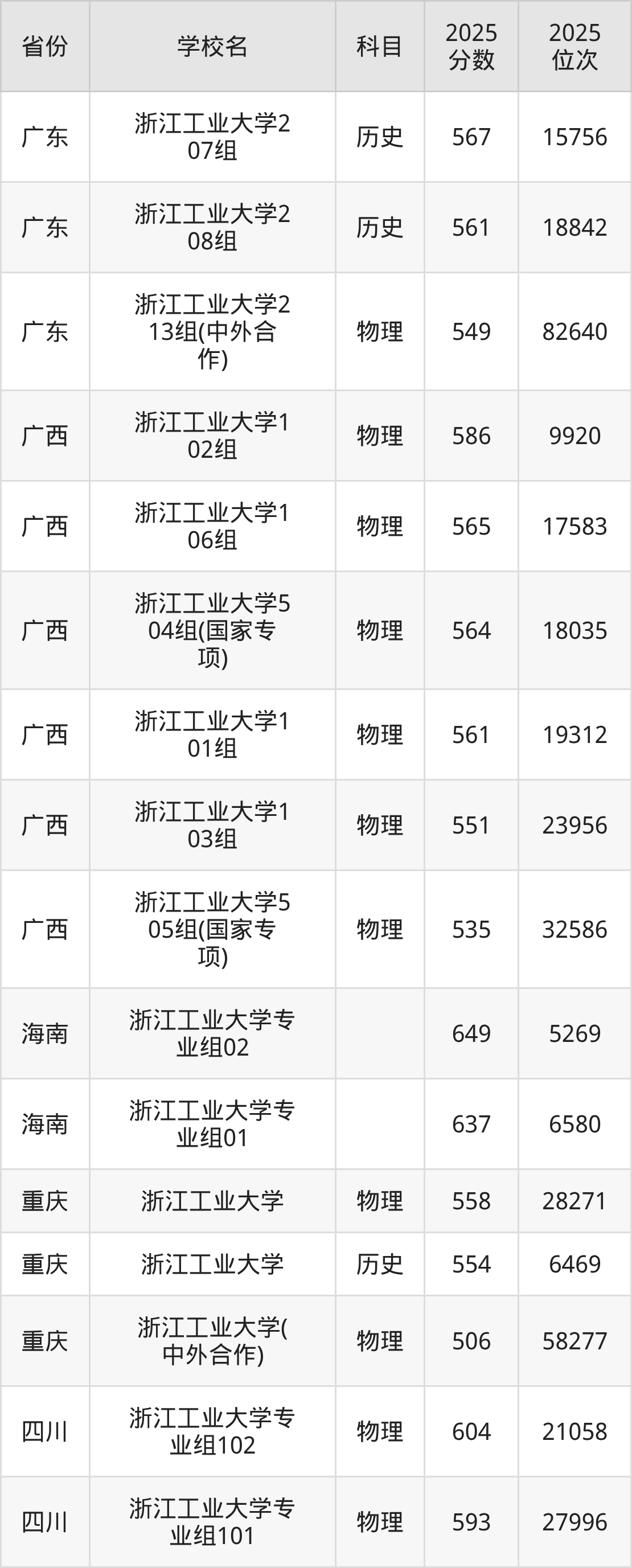 下面是浙江工业大学2025年录取分数线各省汇总,一起来了解下吧。