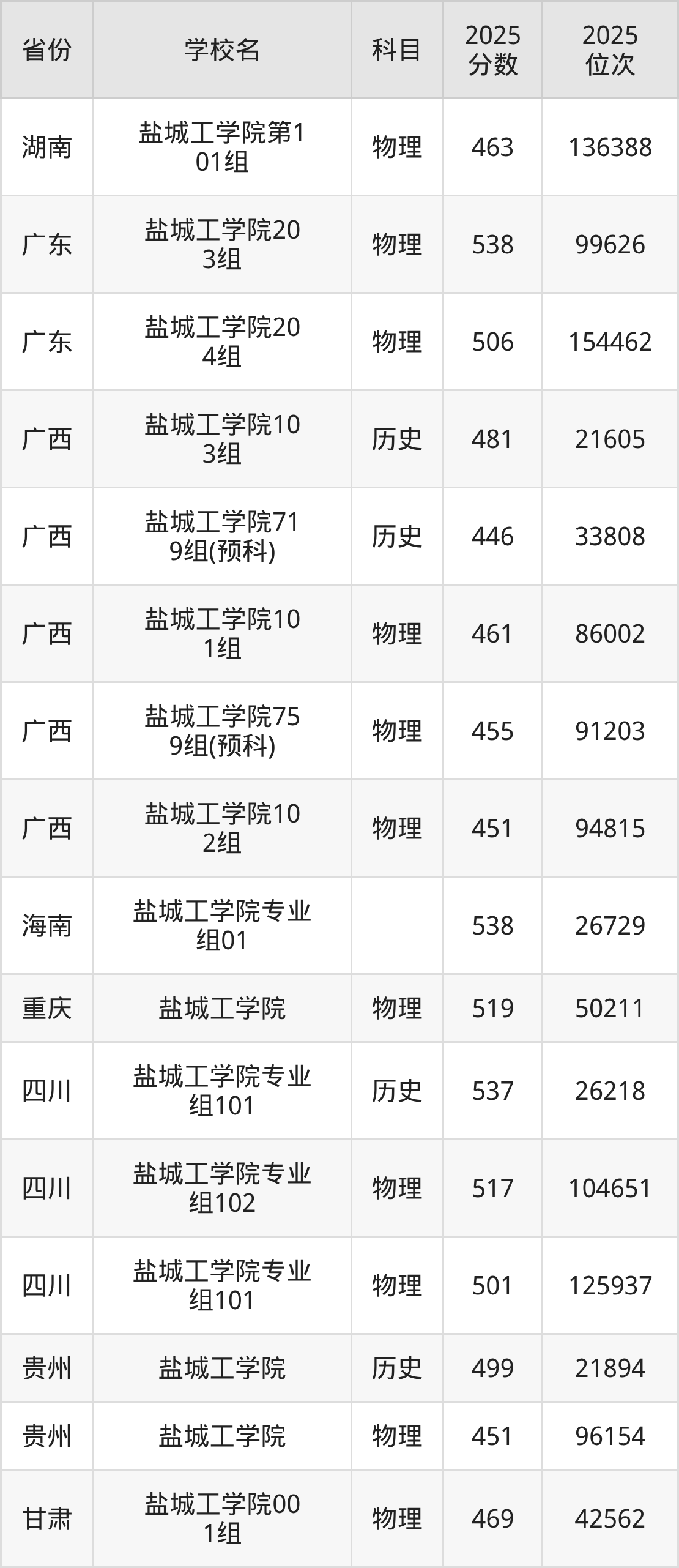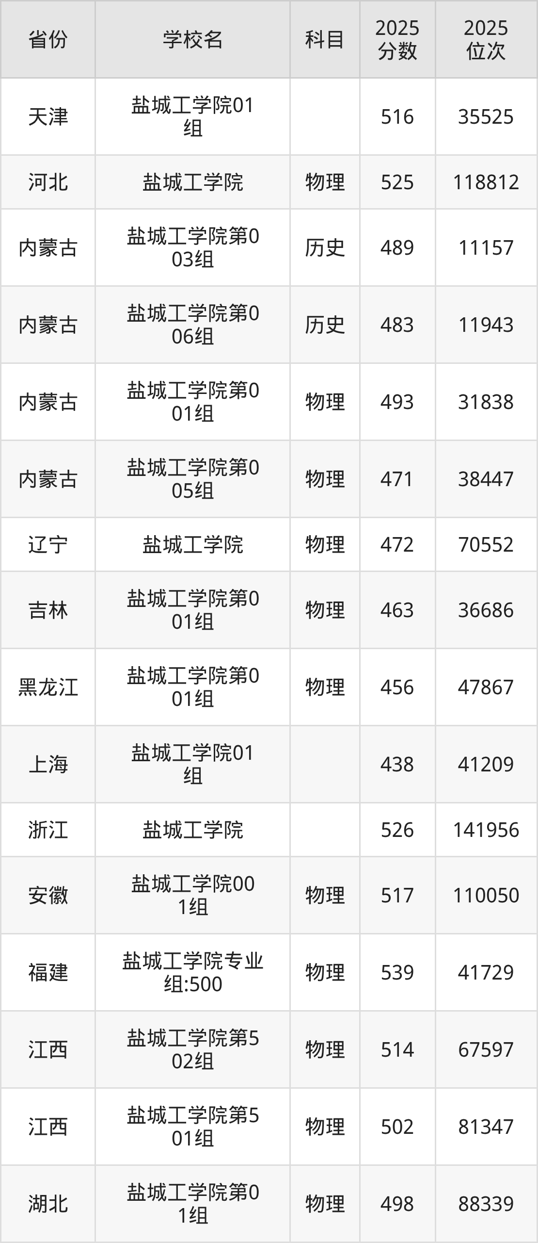 2025年盐城工学院历史类最低分533分(31664名)、物理类最低分484分(183221名)。