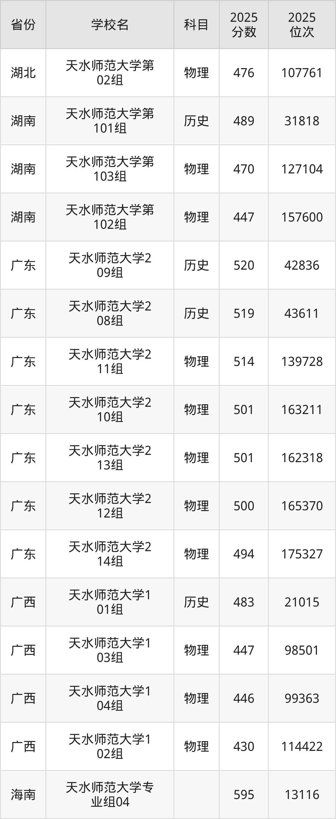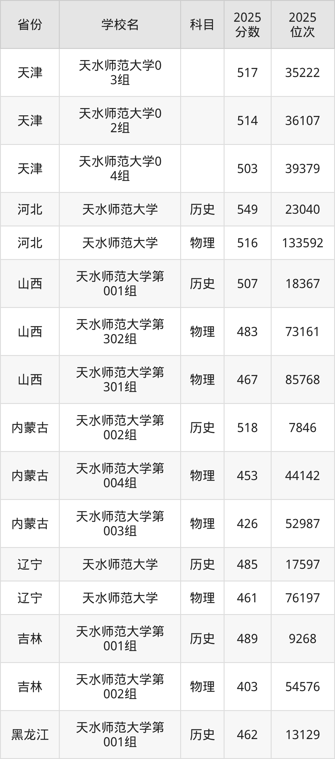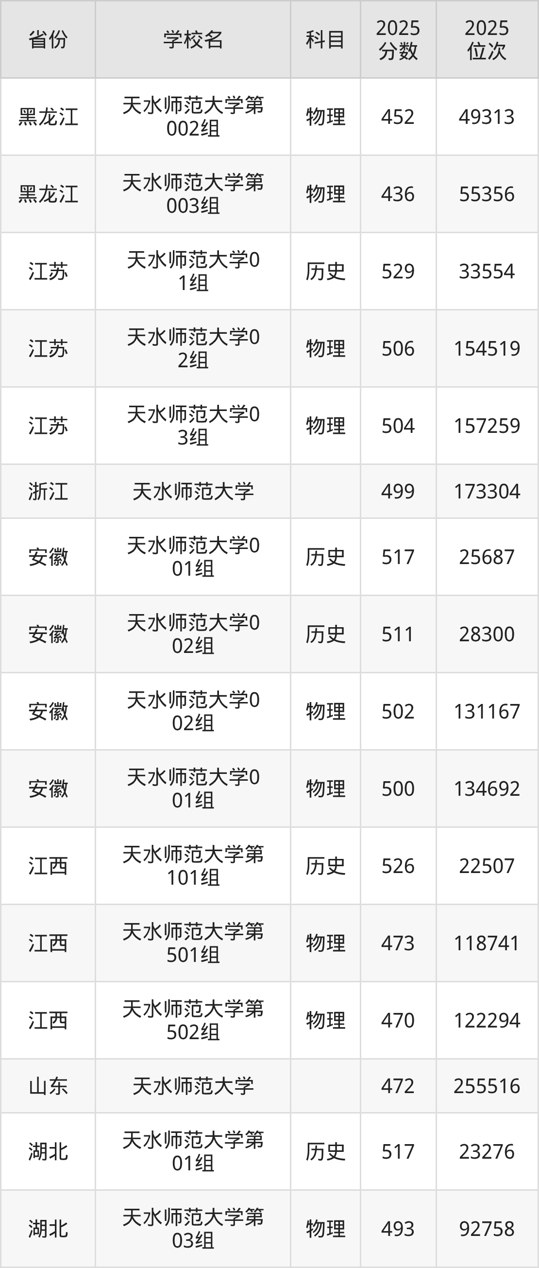 | 天水师范大学0 31组 | 物理 | 447 | 54160 |