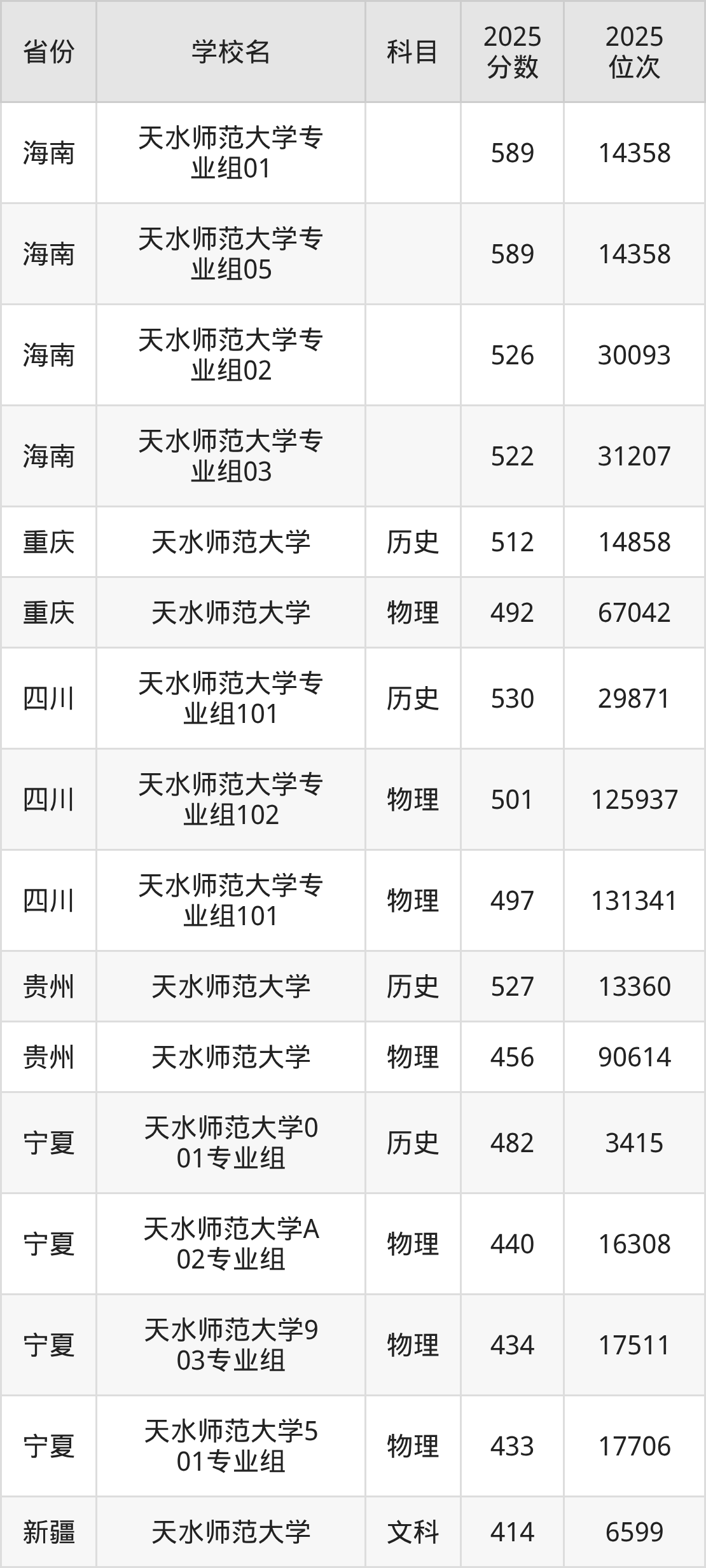 下面是天水师范大学2025年录取分数线各省汇总,一起来了解下吧。