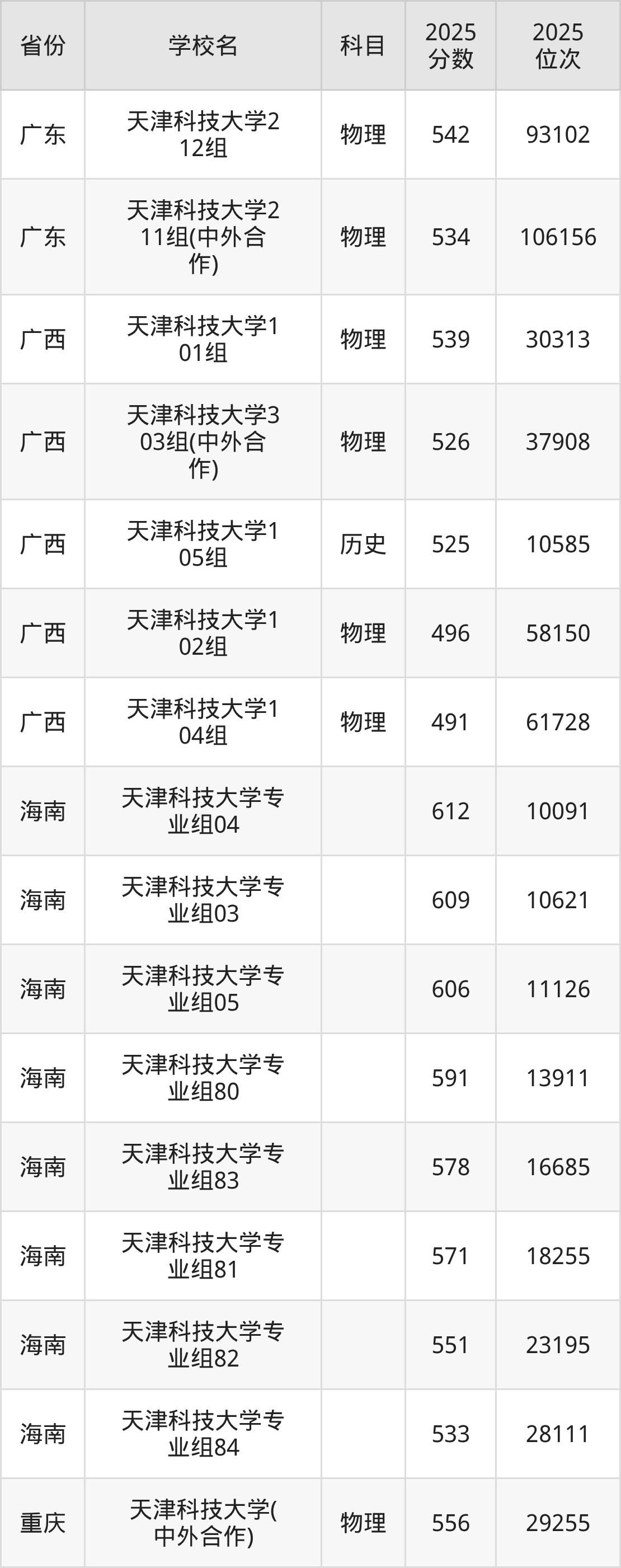 下面是天津科技大学2025年录取分数线各省汇总,一起来了解下吧。