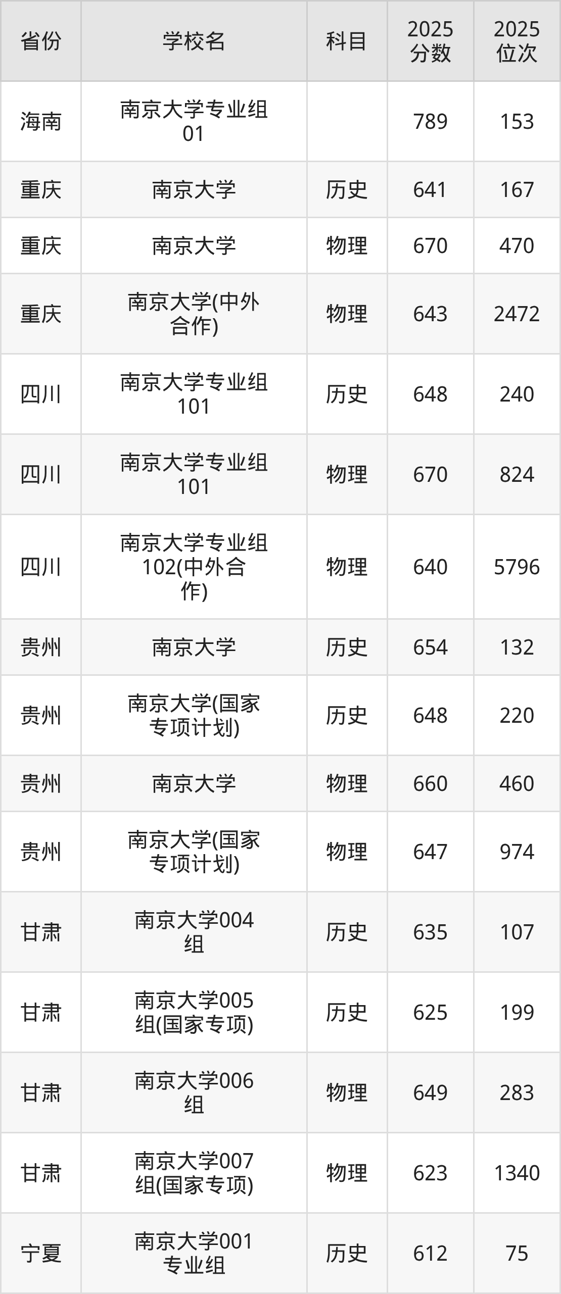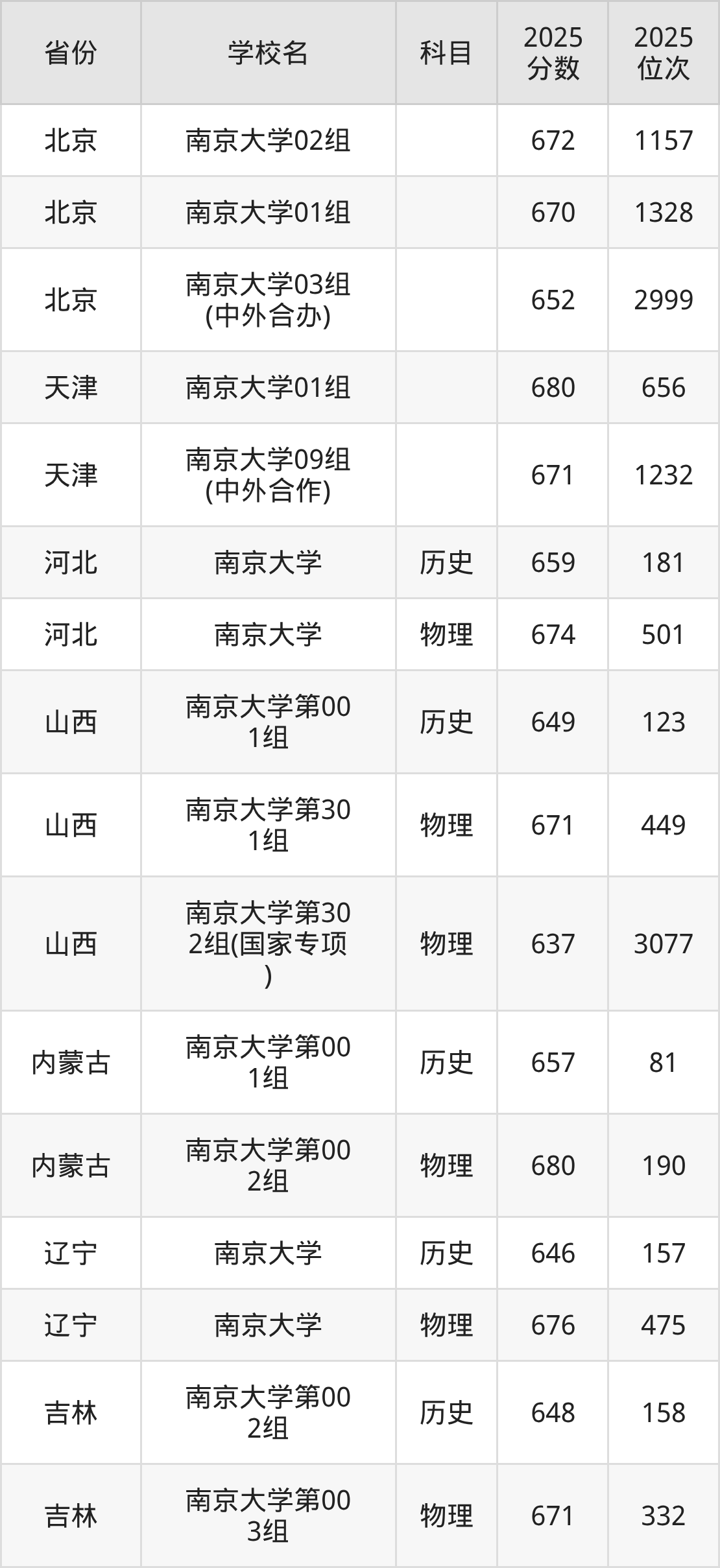下面是南京大学2025年录取分数线各省汇总,一起来了解下吧。