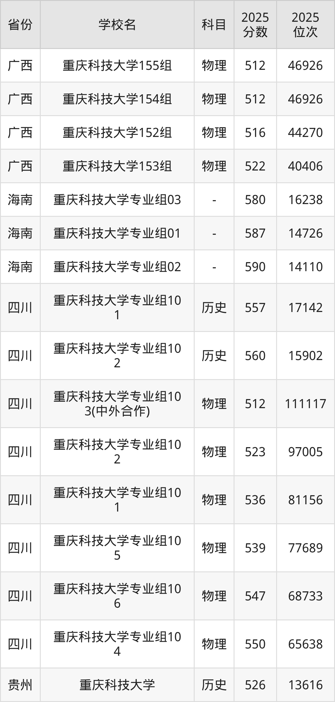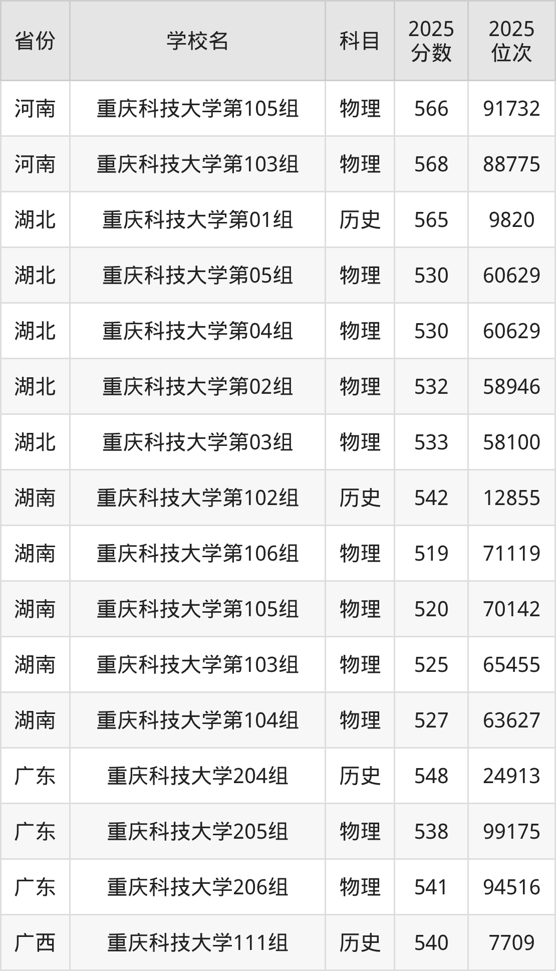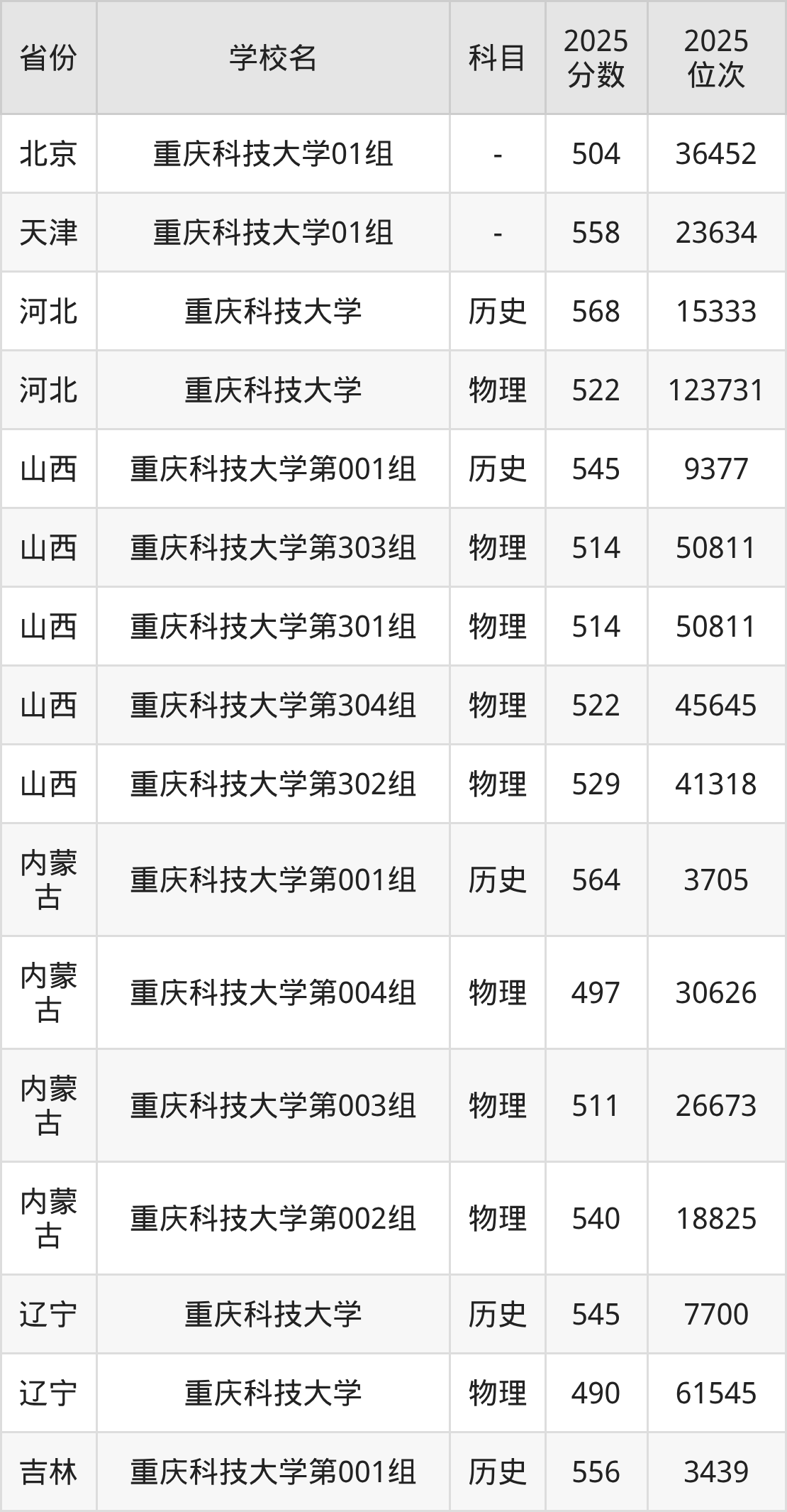 下面是重庆科技大学2025年录取分数线各省汇总,一起来了解下吧。