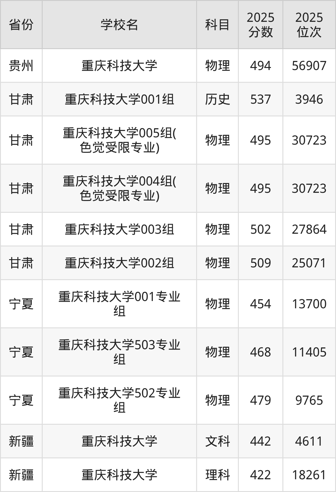 | 重庆科技大学( 地方专项) | 物理 | 519 | 50211 |