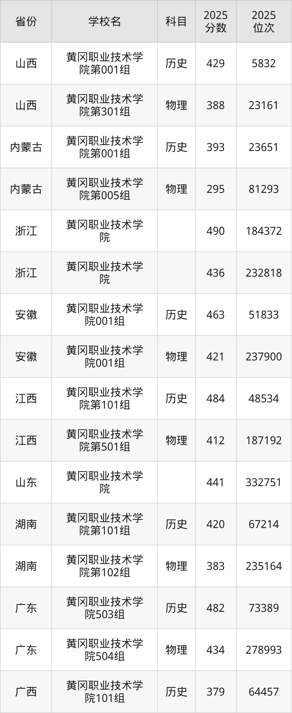 下面是黄冈职业技术学院2025年录取分数线各省汇总,一起来了解下吧。