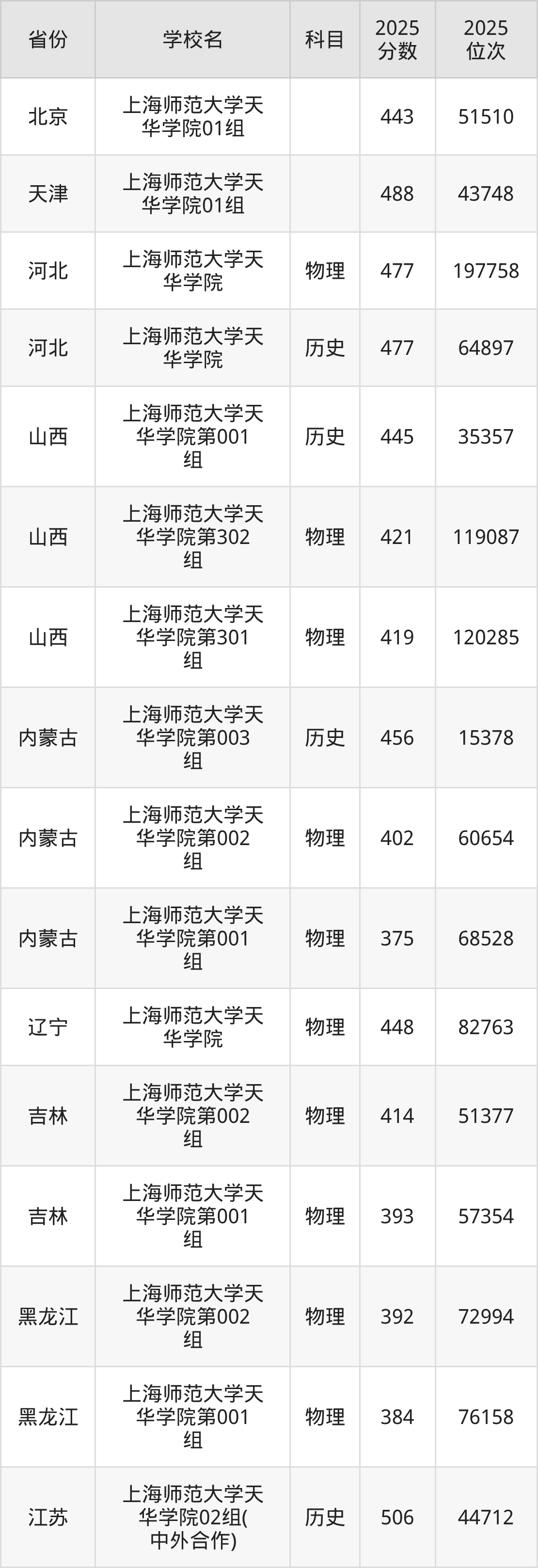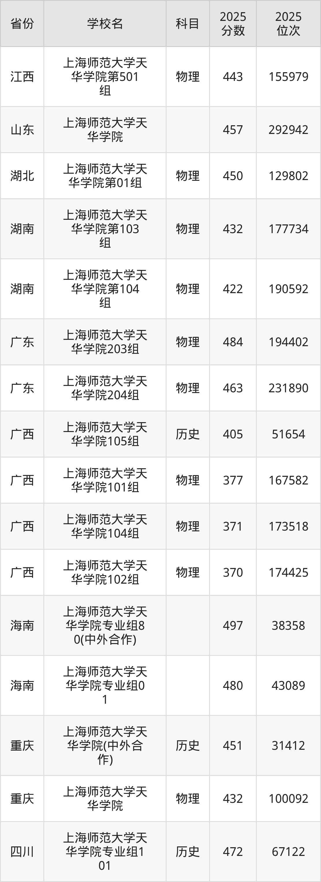 下面是上海师范大学天华学院2025年录取分数线各省汇总,一起来了解下吧。