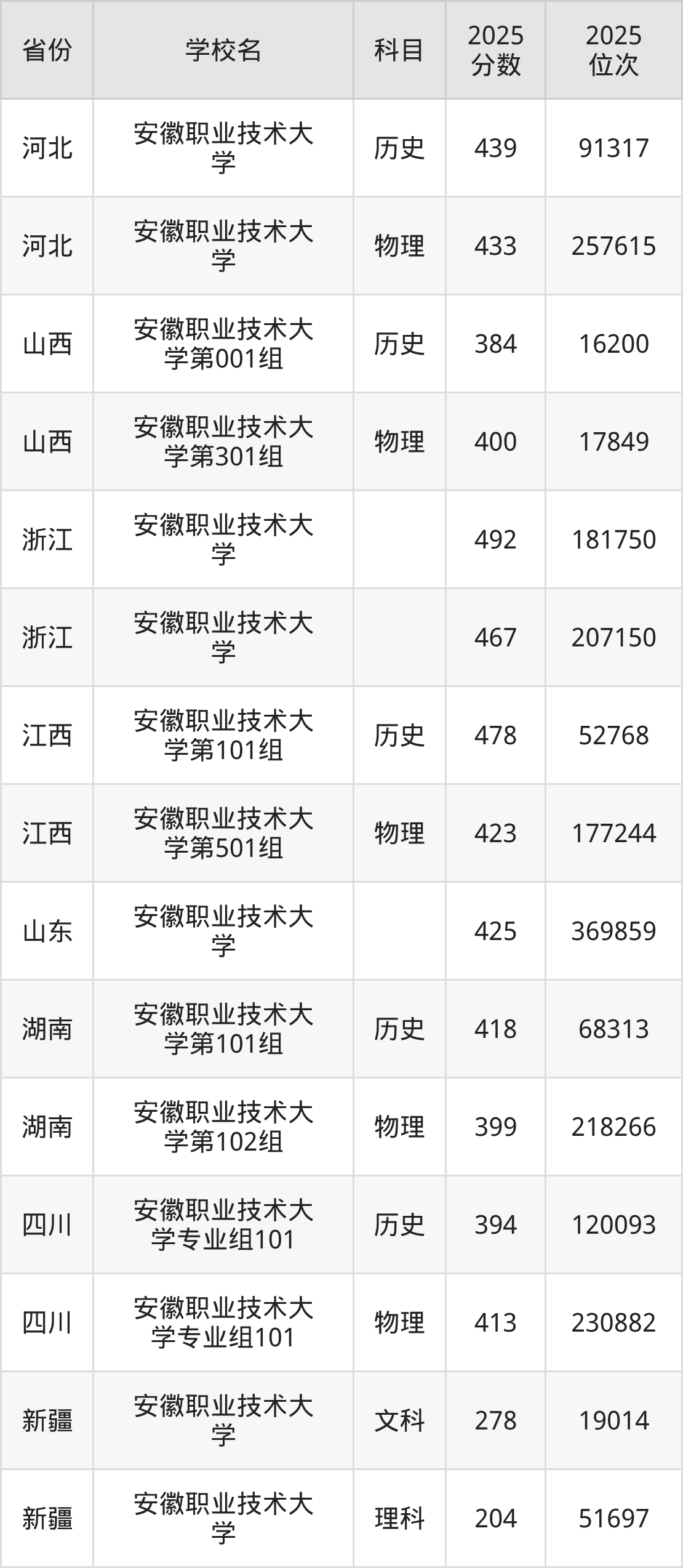下面是安徽职业技术大学2025年录取分数线各省汇总,一起来了解下吧。