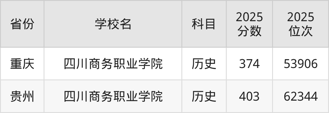下面是四川商务职业学院2025年录取分数线各省汇总,一起来了解下吧。